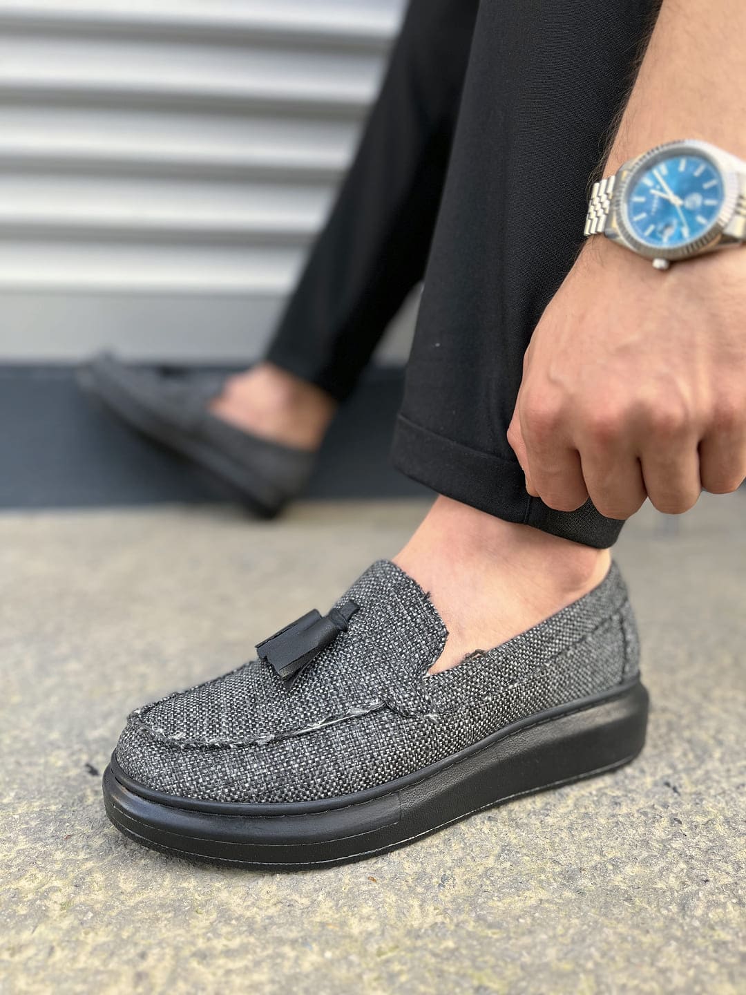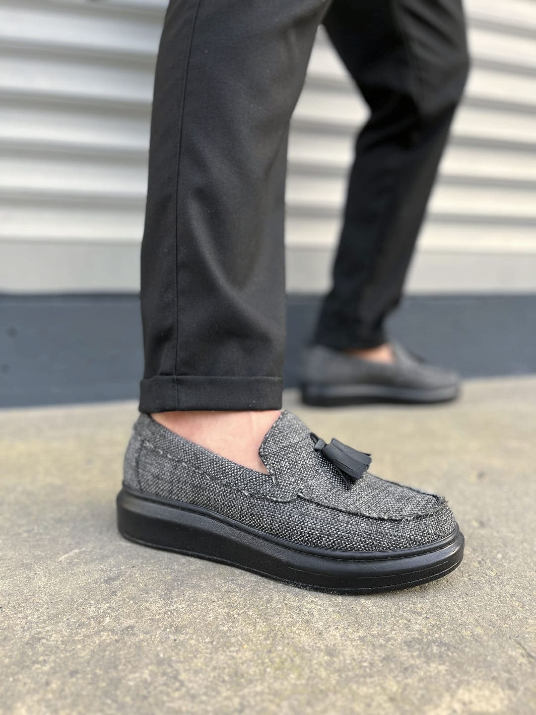 JY154 Blaze Bağcıksız Püsküllü Keten Erkek Günlük Spor Klasik Ayakkabı KST – Gri