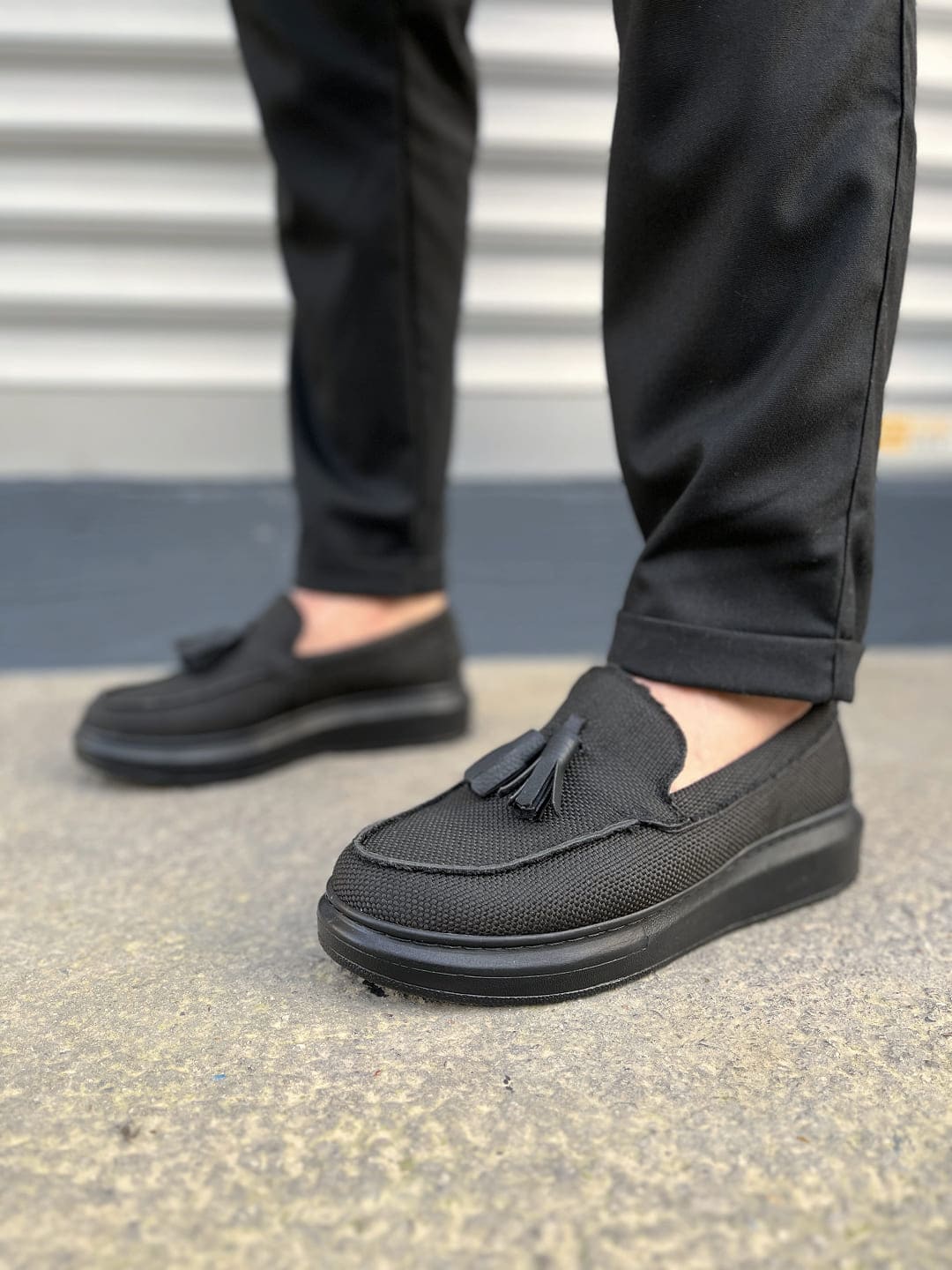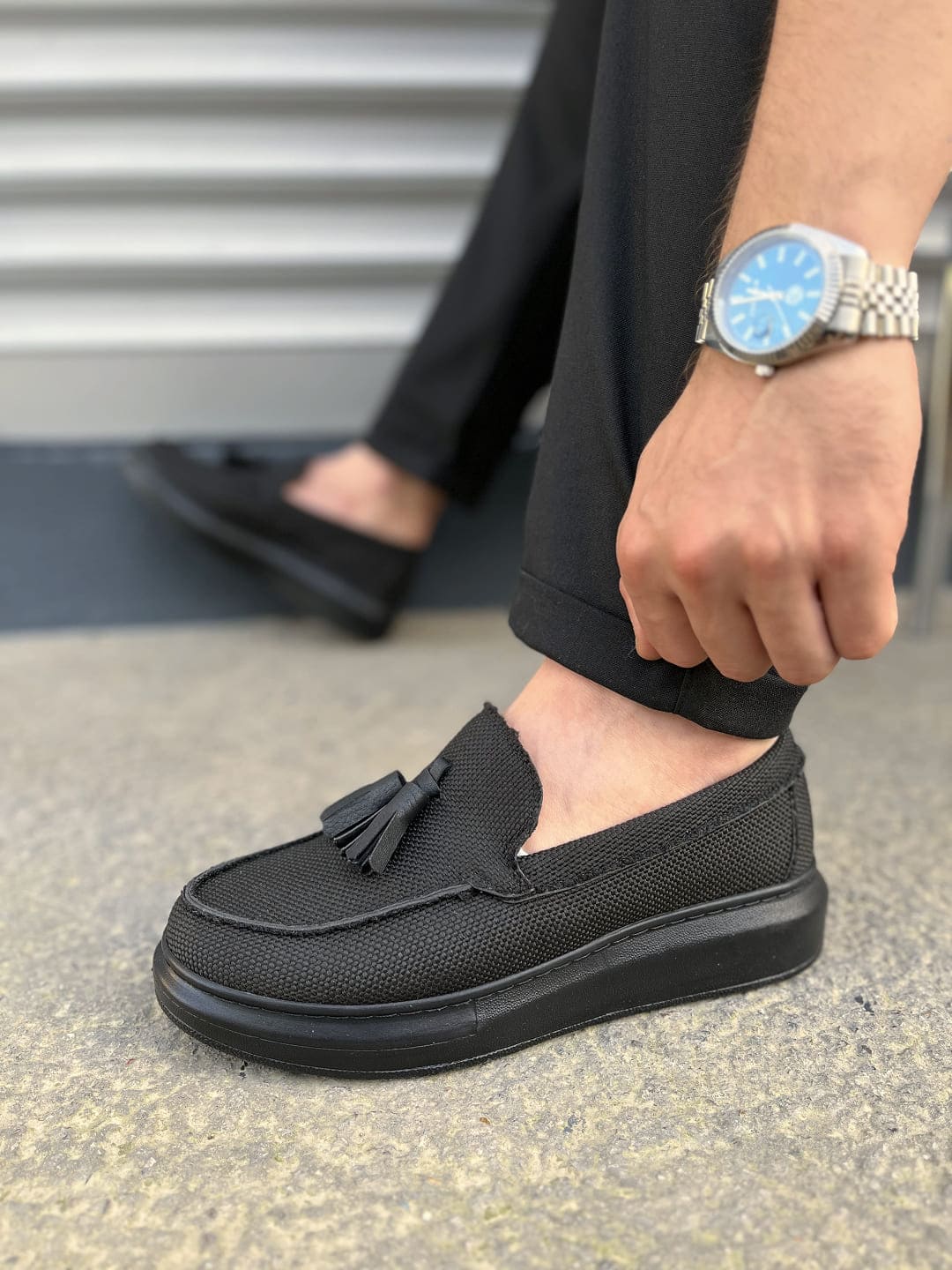 JY154 Blaze Bağcıksız Püsküllü Keten Erkek Günlük Spor Klasik Ayakkabı KST – Siyah