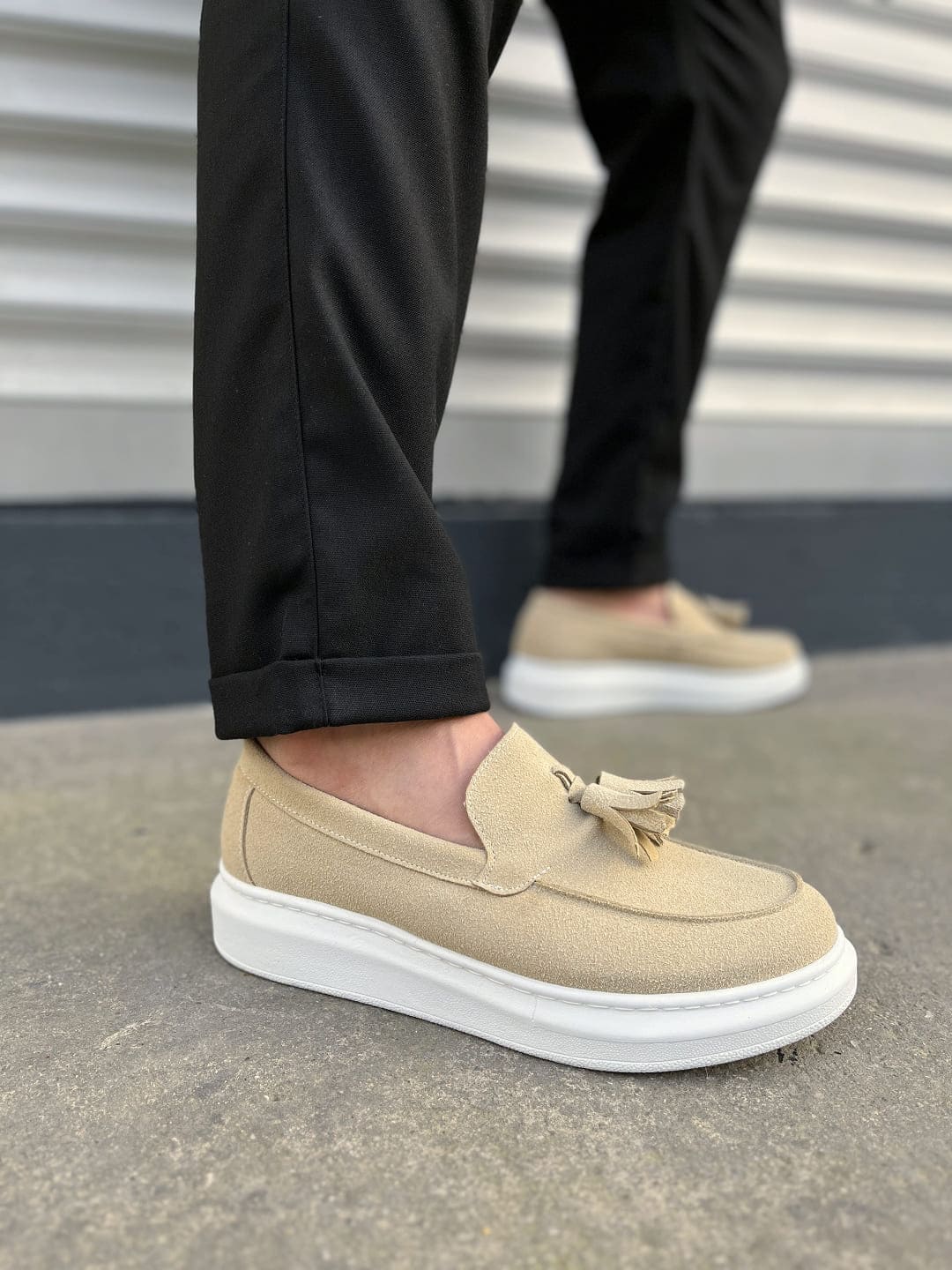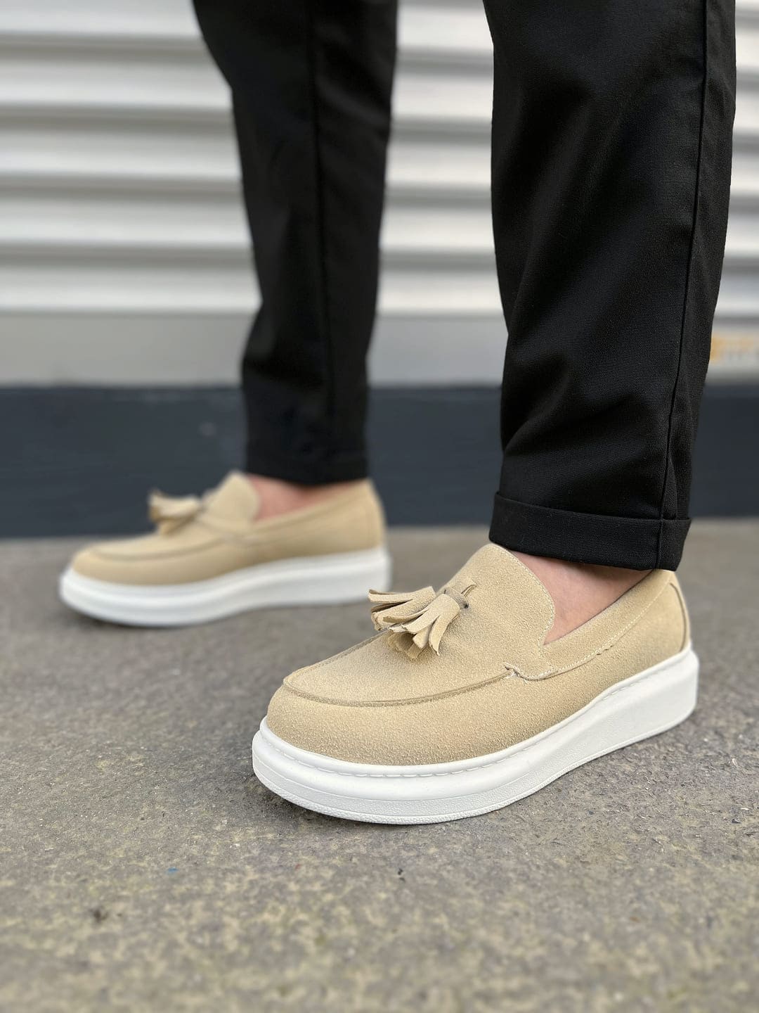 JY154 Blaze Bağcıksız Püsküllü Süet Erkek Günlük Spor Klasik Ayakkabı SBT – Krem