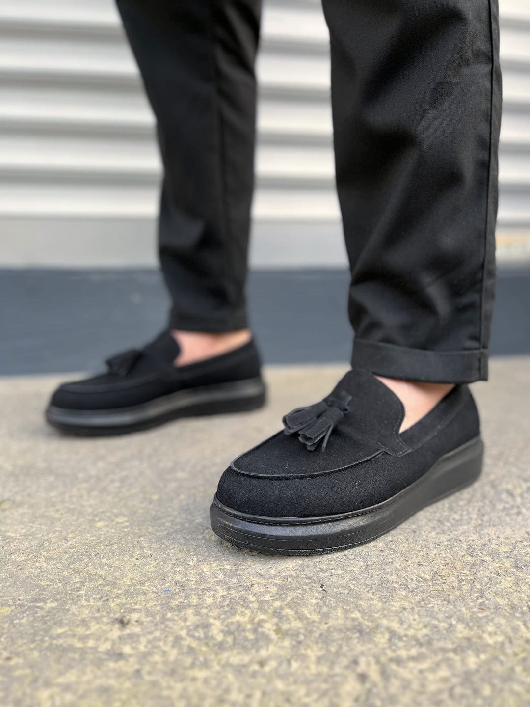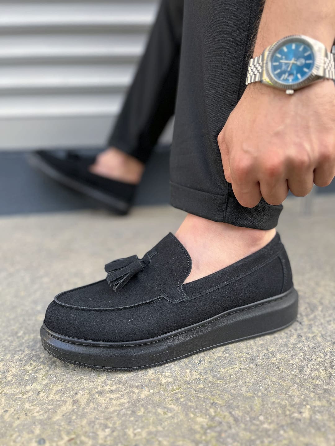 JY154 Blaze Bağcıksız Püsküllü Süet Erkek Günlük Spor Klasik Ayakkabı SST – Siyah