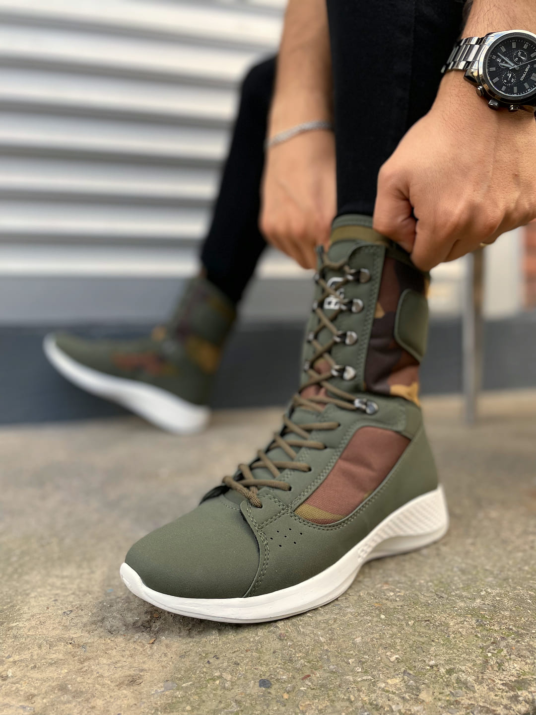 JY799 Verton Bağcıklı Ortopedik Taban Günlük Cilt Erkek Askeri Postal Bot CBT Haki