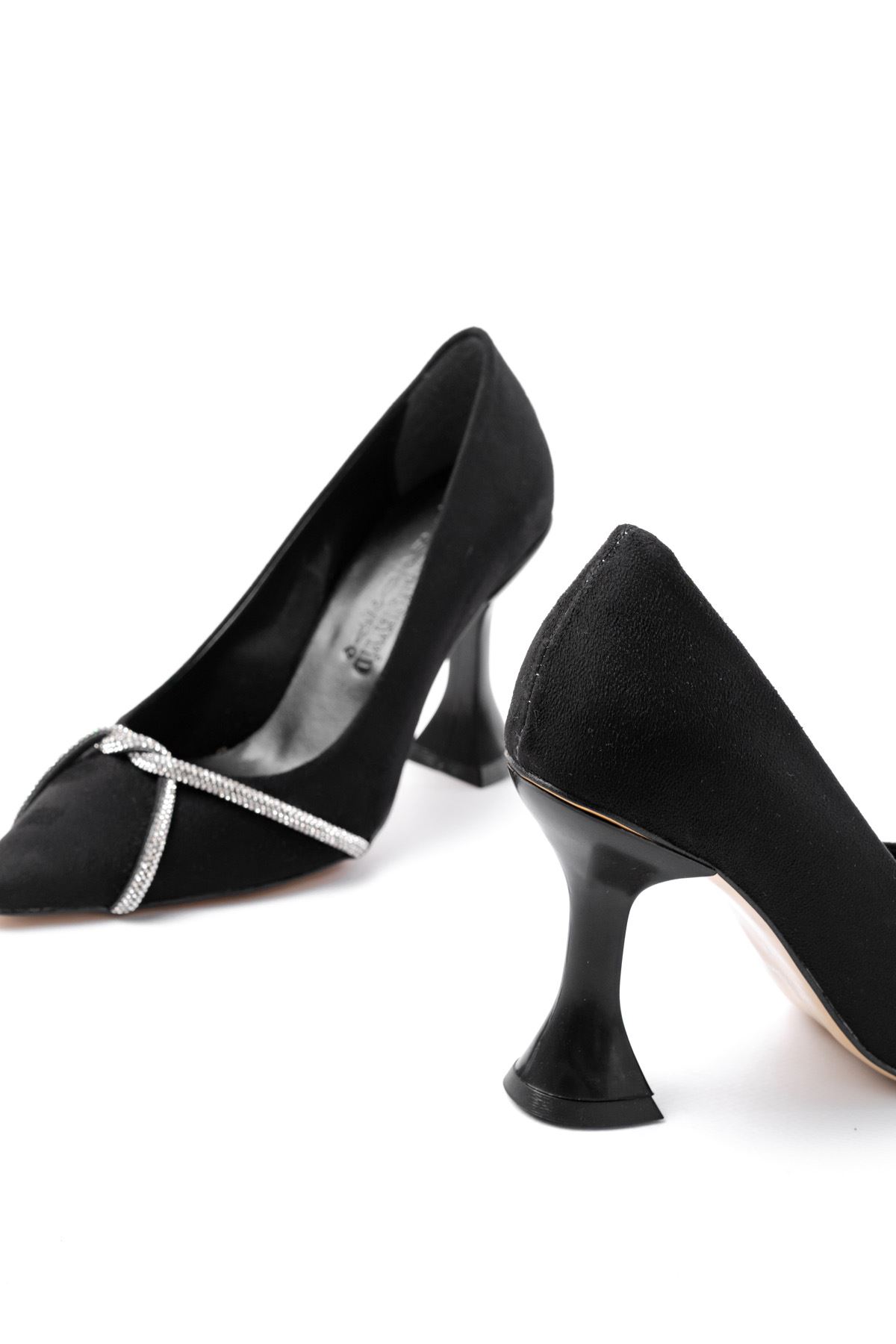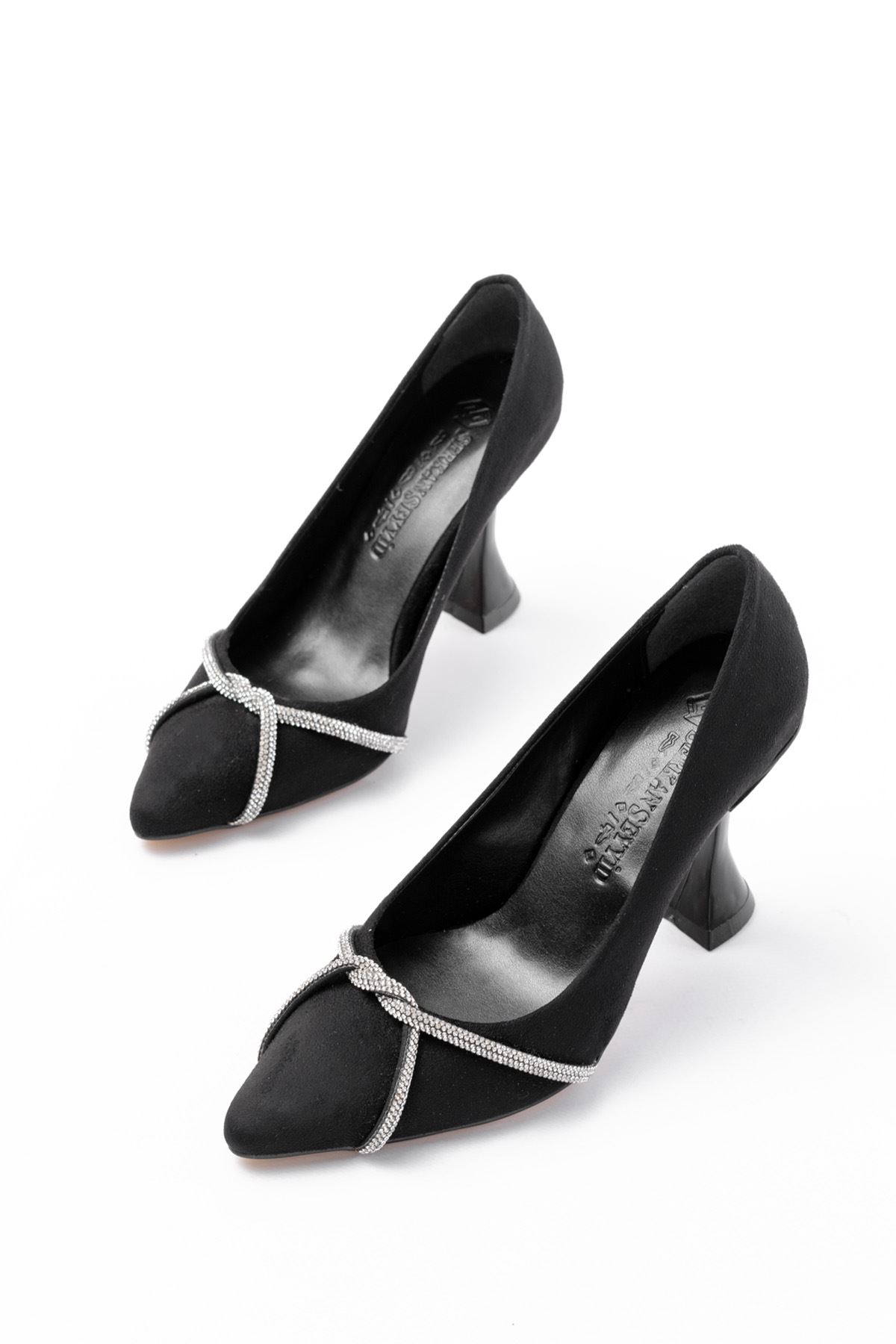 K-10 Siyah Süet Günlük Sarmal Taşlı Topuklu Kadın Ayakkabı