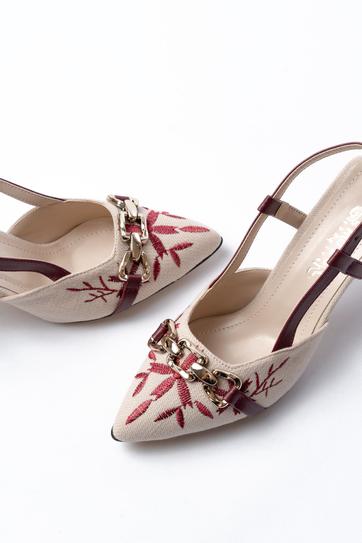 K-250 Bordo Keten Günlük Arkası Açık Tokalı Topuklu Kadın Ayakkabı