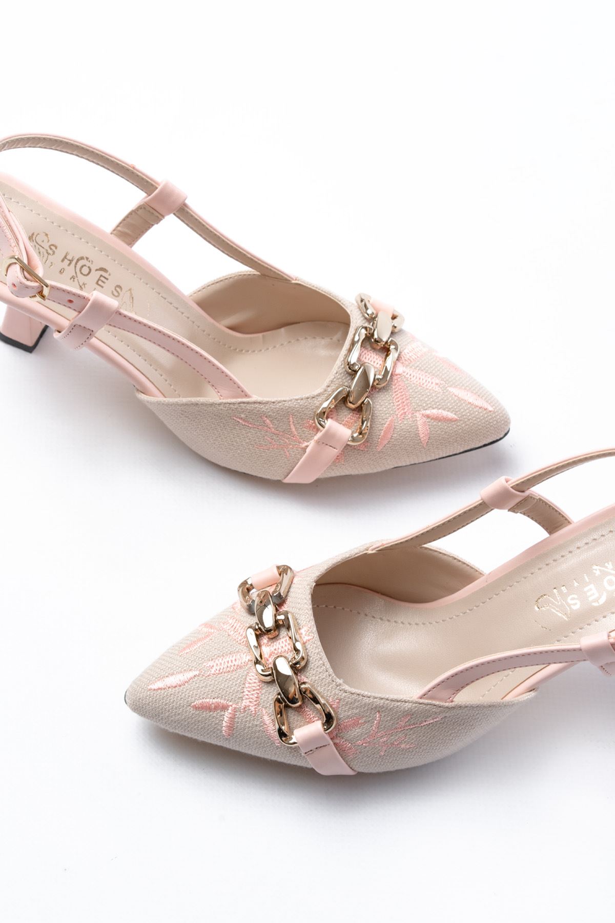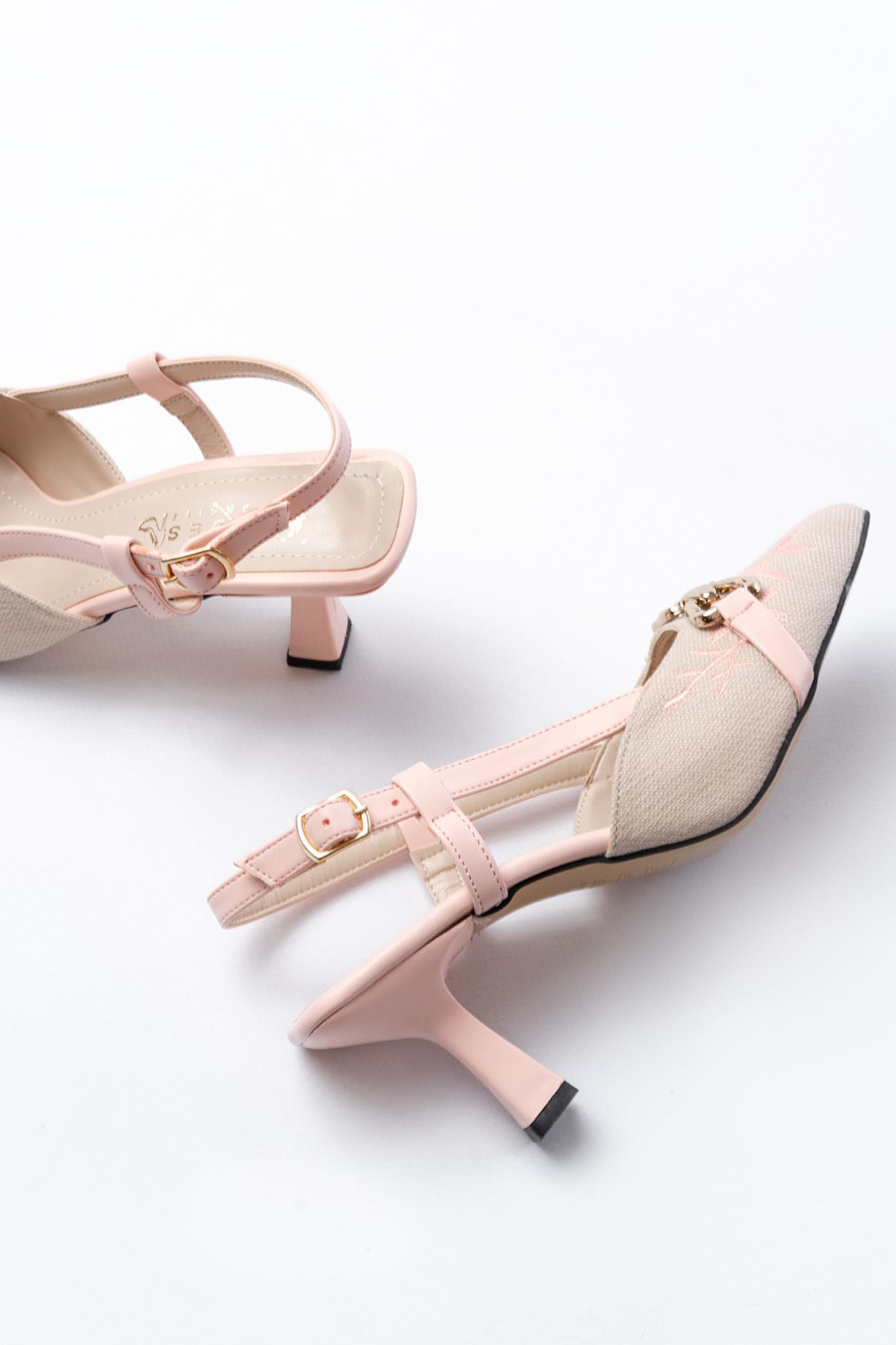 K-250 Pudra Keten Günlük Arkası Açık Tokalı Topuklu Kadın Ayakkabı
