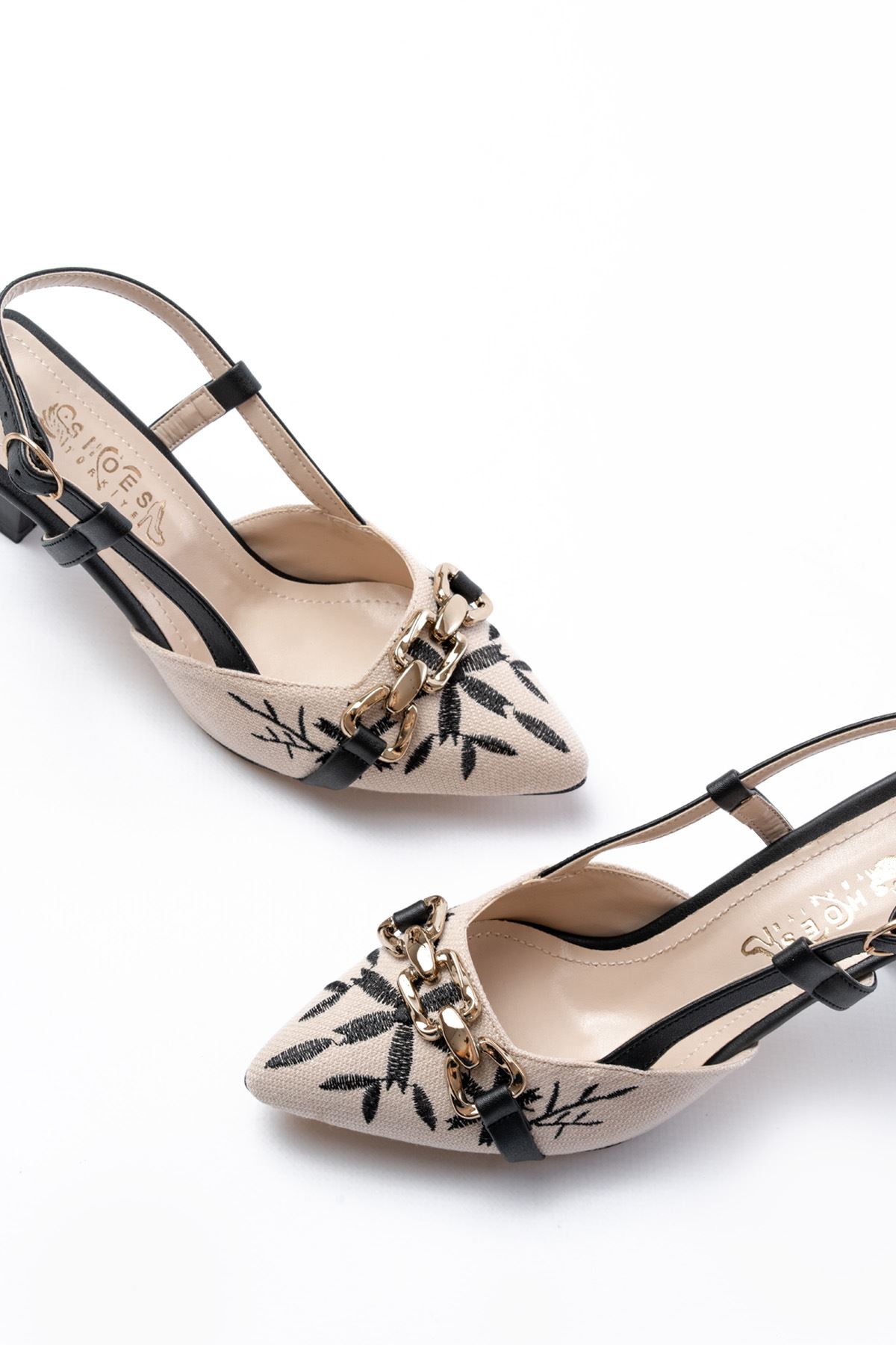 K-250 Siyah Keten Günlük Arkası Açık Tokalı Topuklu Kadın Ayakkabı