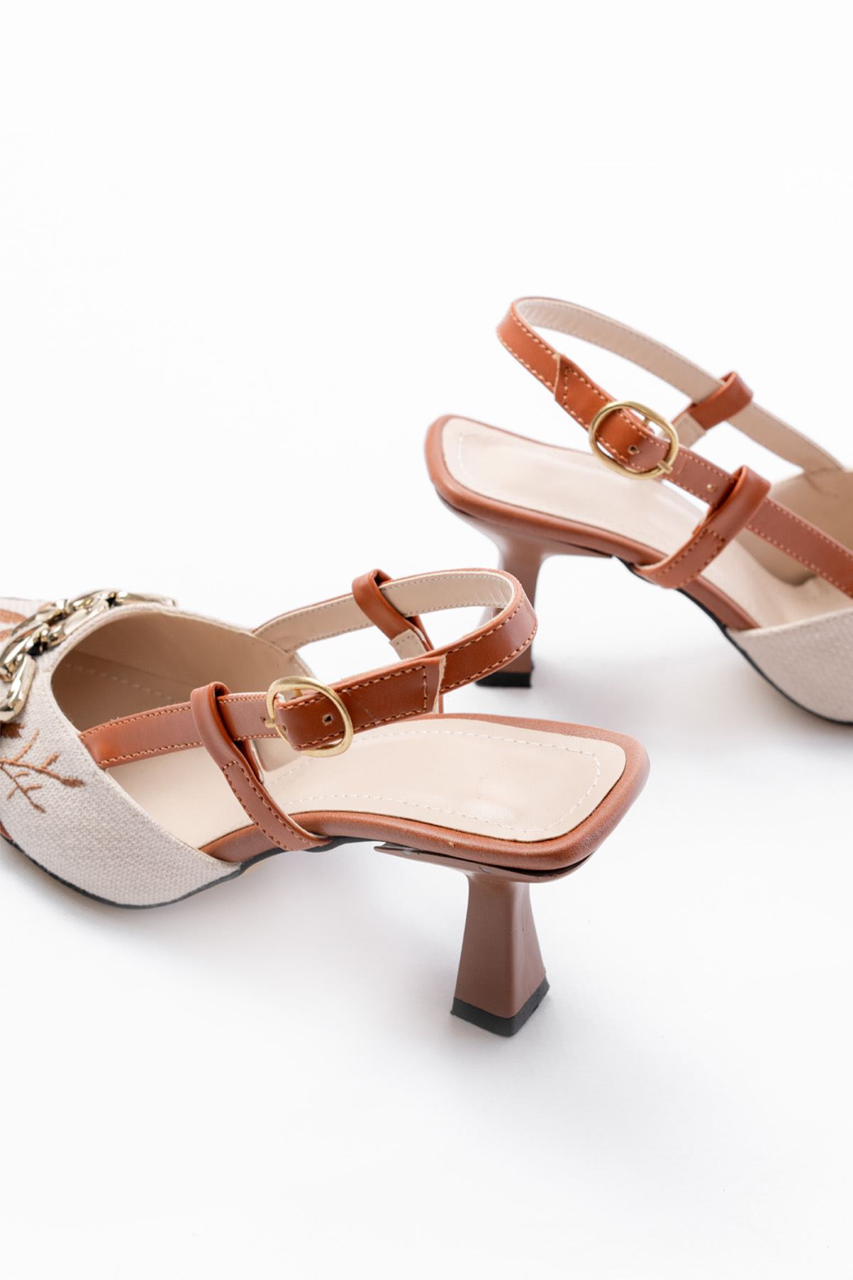 K-250 Taba Keten Günlük Arkası Açık Tokalı Topuklu Kadın Ayakkabı