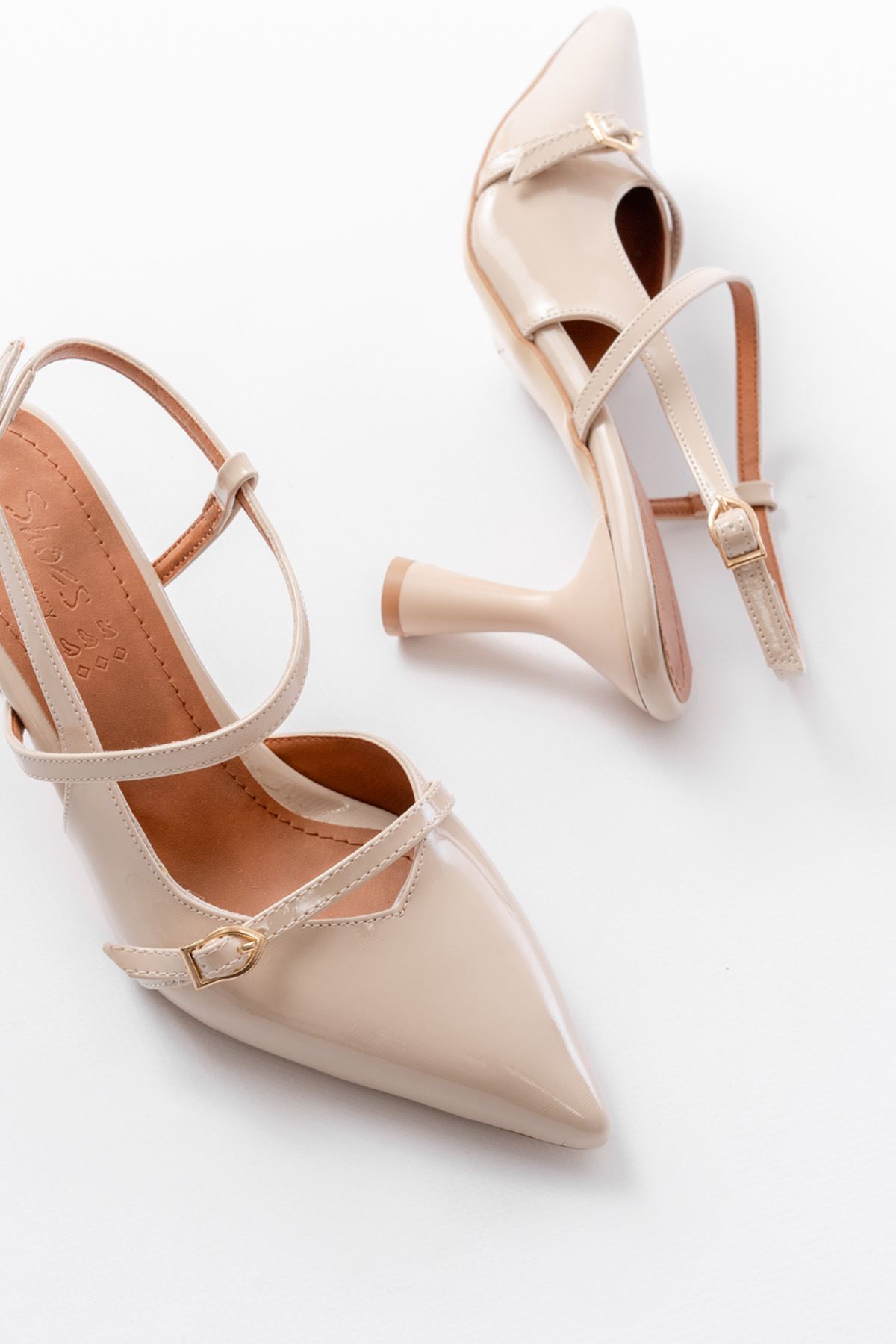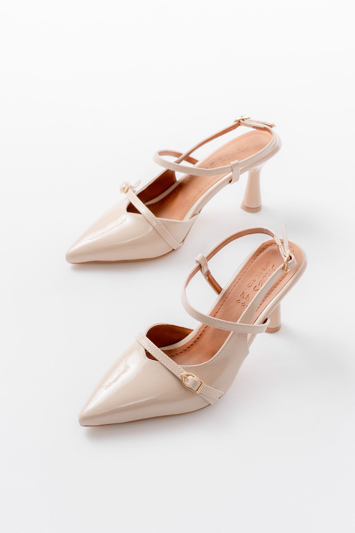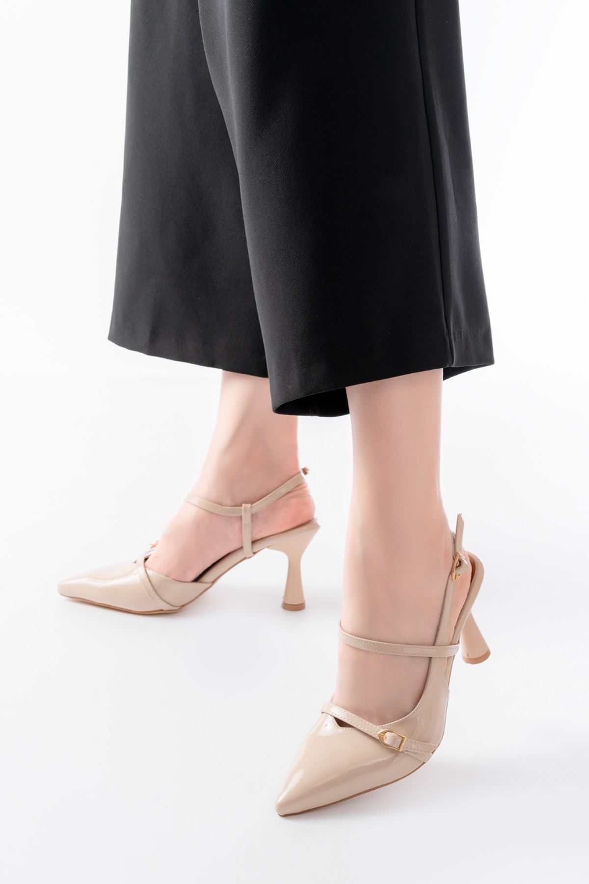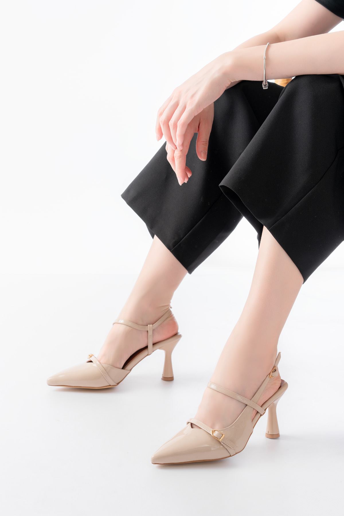 K-6722 Bej Rugan Toka Detaylı Sivri Burun Kadın Ayakkabı