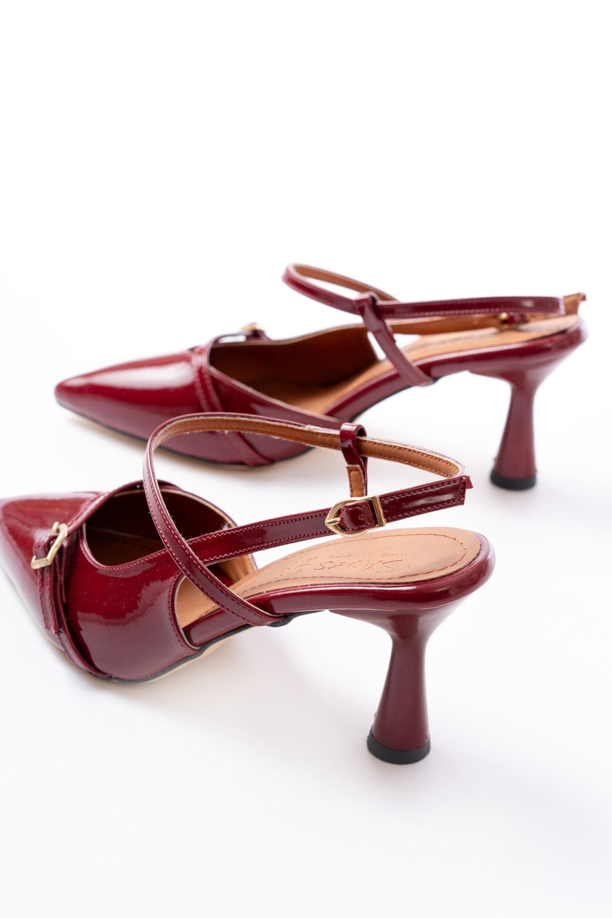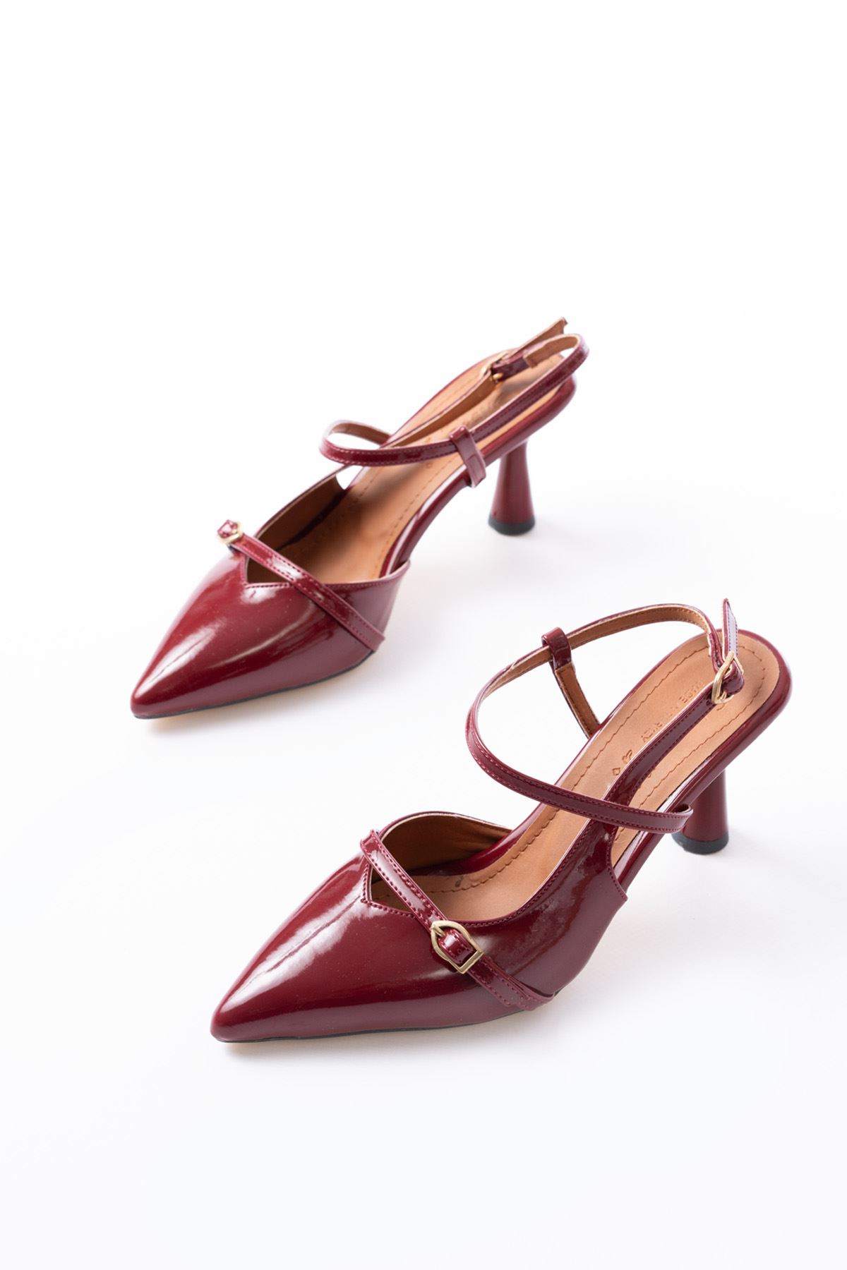 K-6722 Bordo Rugan Toka Detaylı Sivri Burun Kadın Ayakkabı