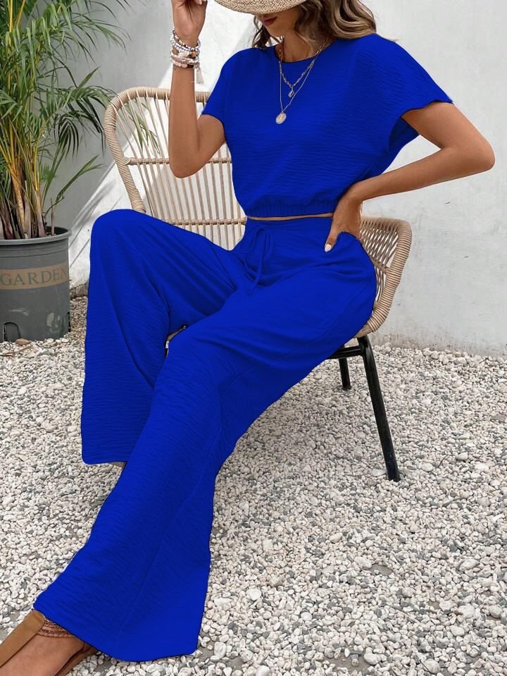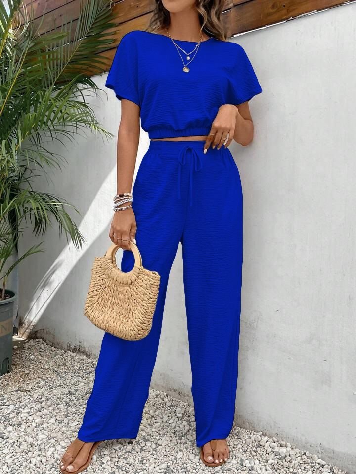 Kadın Aerobin Kumaş Bel Lastik Detaylı Pantolonlu Takım