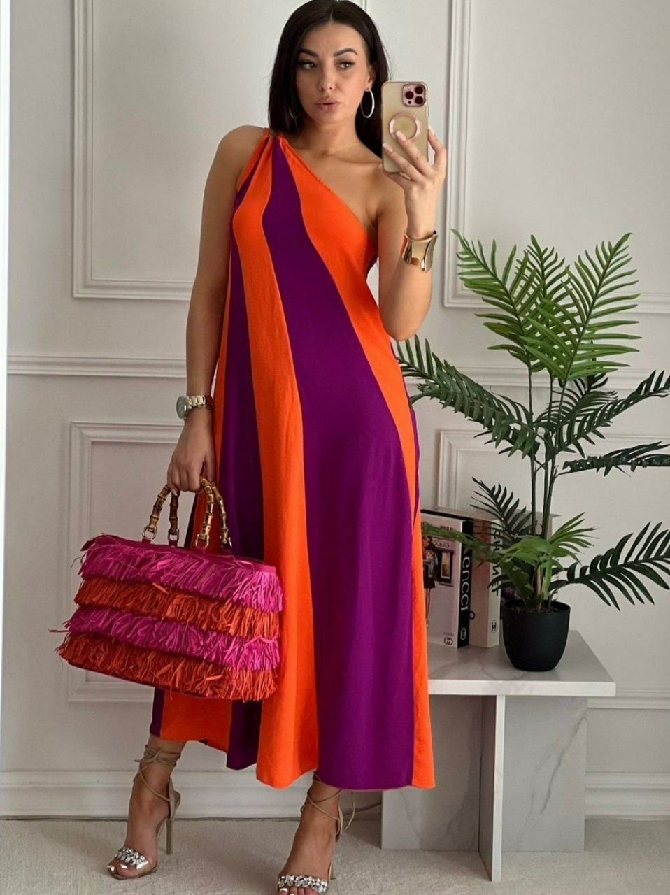 Kadın Aerobin Kumaş Parçalı Omuz Detay Maxi Boy Elbise