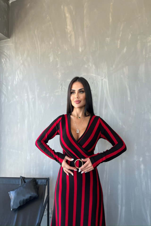 “Kadın Akrilik Kumaş Kruvaze Yaka Kemerli Uzun Kollu çizgili Midi Boy Elbise” için yorum yapan ilk kişi siz olun