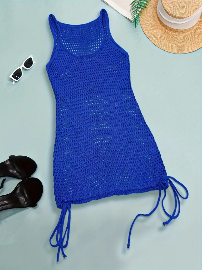 Kadın Askılı Eteği Büzgü Bağlama Detay Delikli örme Triko Pareo Elbise