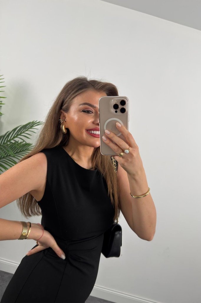 “Kadın Askılı Kolsuz Belden Büzgülü Yırtmaçlı Midi Janjan Krep Elbise” için yorum yapan ilk kişi siz olun