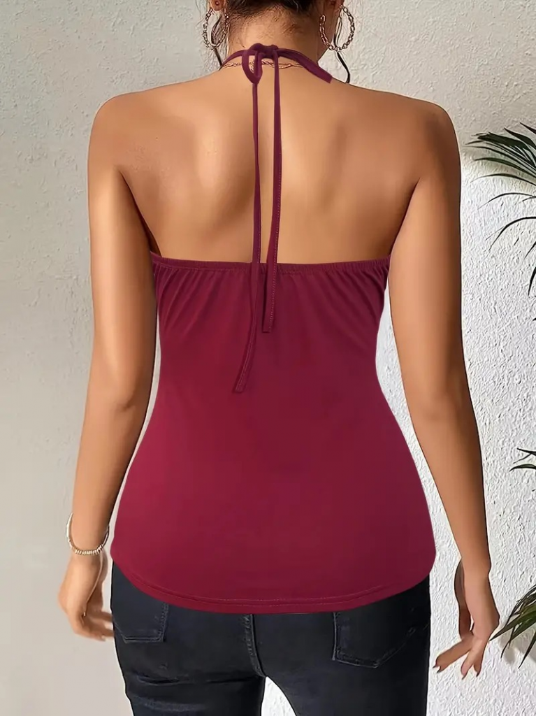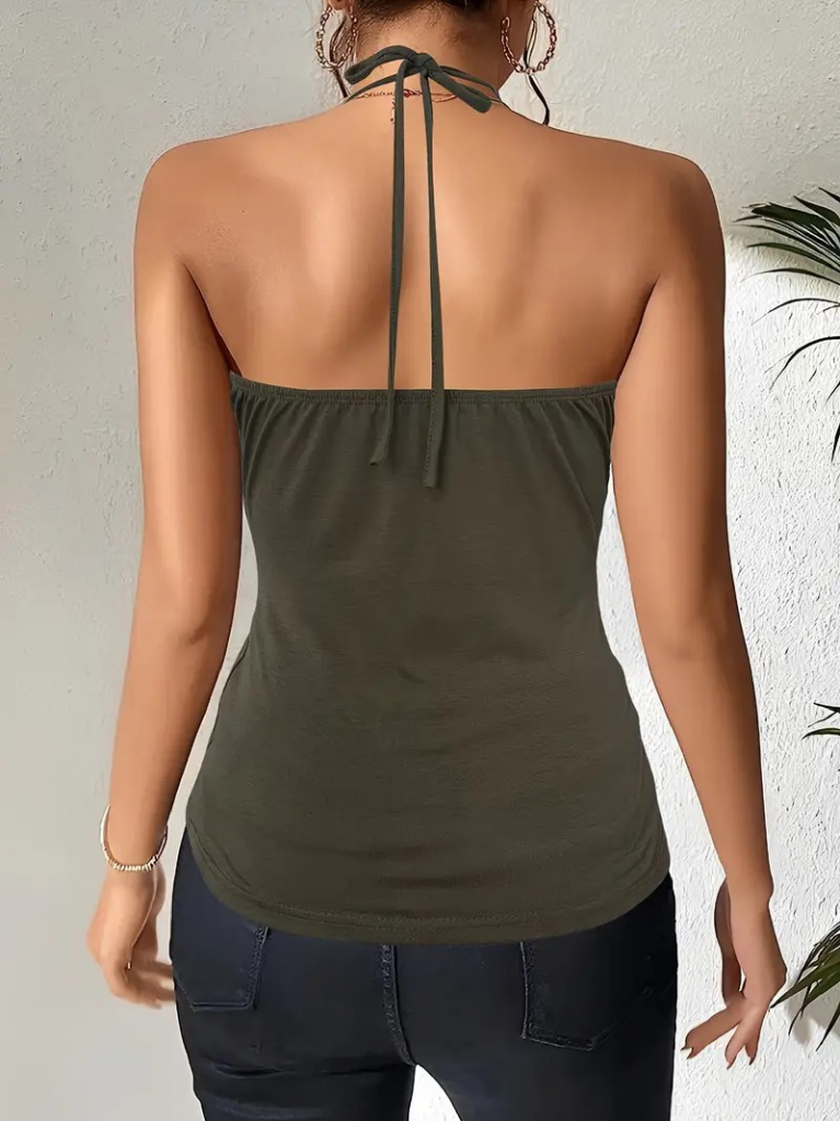 Kadın Askılı Kuş Gözü Ve Dekolte Detay Boyundan Bağlamalı Viskon Bluz