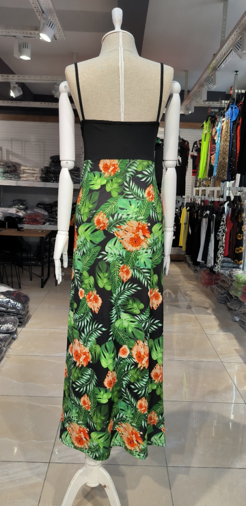 Kadın Askılı V Yaka Eteği Dijital Baskılı çiçek Desenli Yırtmaçlı Mikro Kumaş Elbise