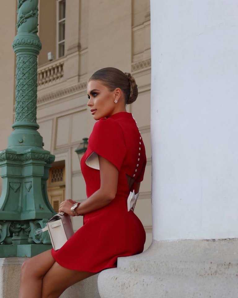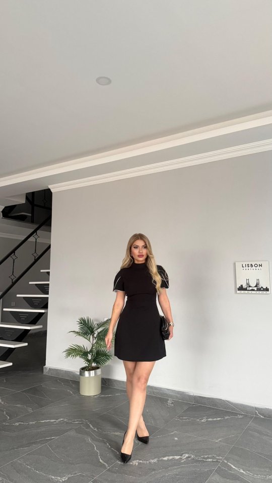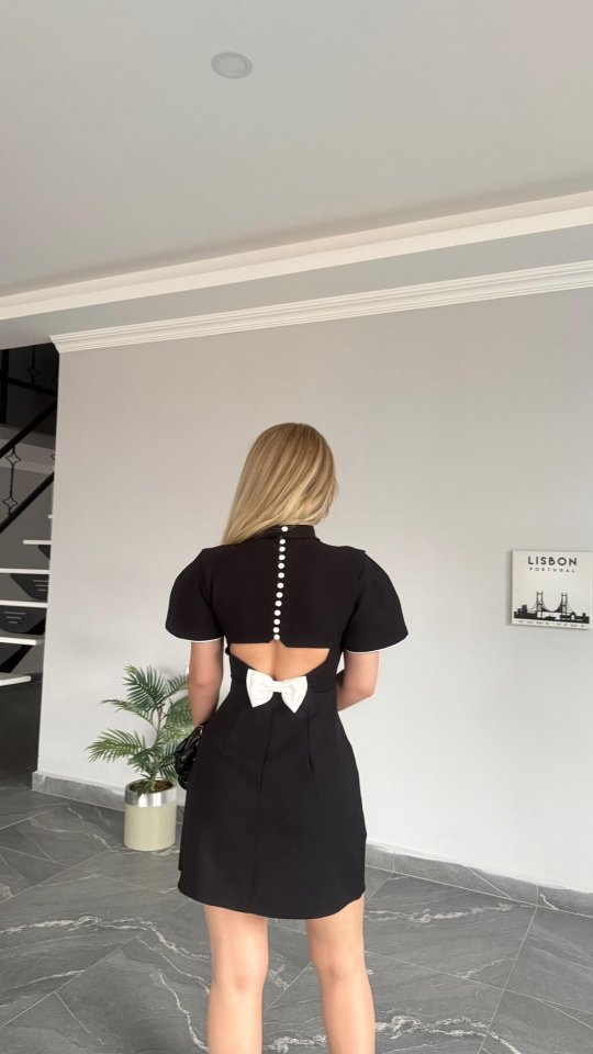 Kadın Atlas Kumaş Iç Astarlı Gizli Fermuarlı Inci Düğme Detaylı Mini Elbise