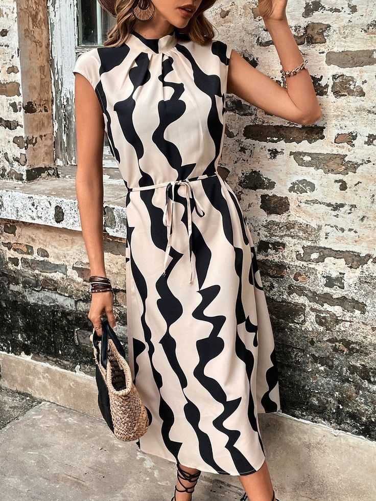 Kadın Balıkçı Yaka Arkadan Bağlamalı Kuşaklı Midi Boy Jessica Elbise