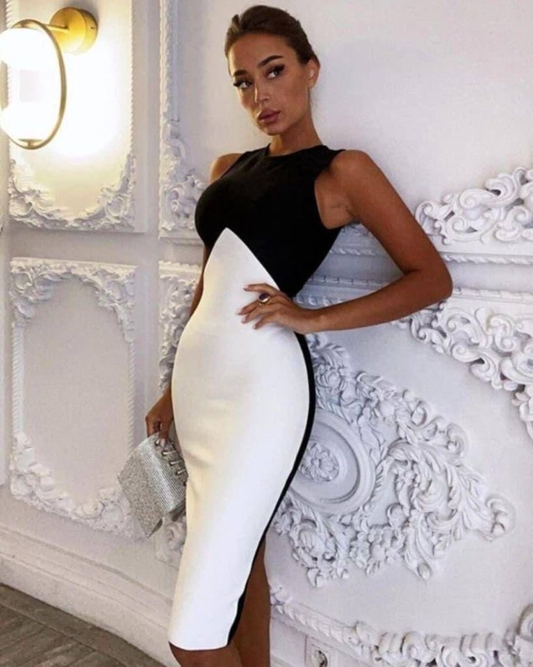 Kadın Bisiklet Yaka Kolsuz çift Renk Detay Midi Boy Elbise