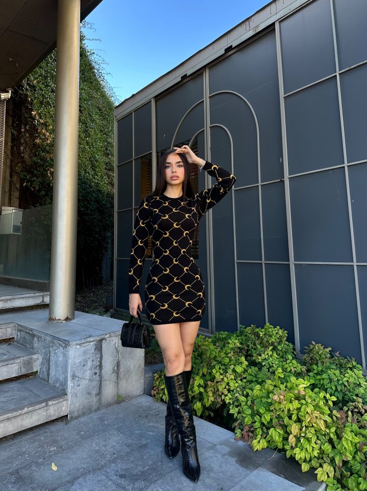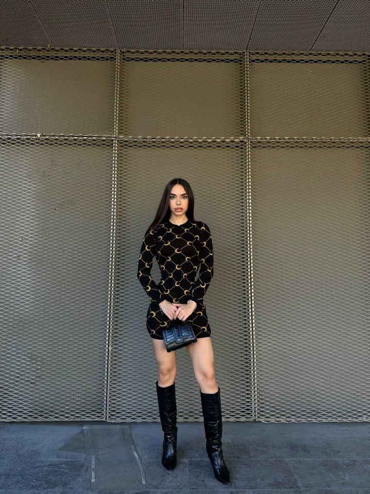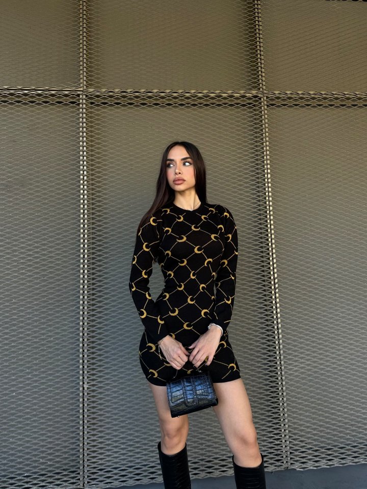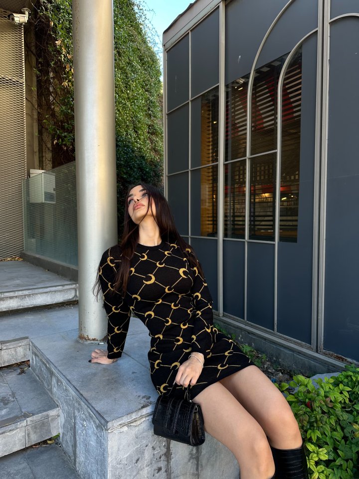 Kadın Bisiklet Yaka Uzun Kol Triko Mini Boy Elbise