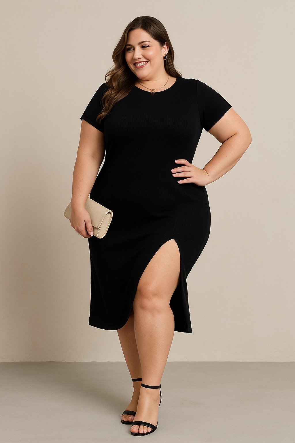 Kadın Büyük Beden Kısa Kollu Yanı Yırtmaçlı Bisiklet Yaka Viskon Elbise