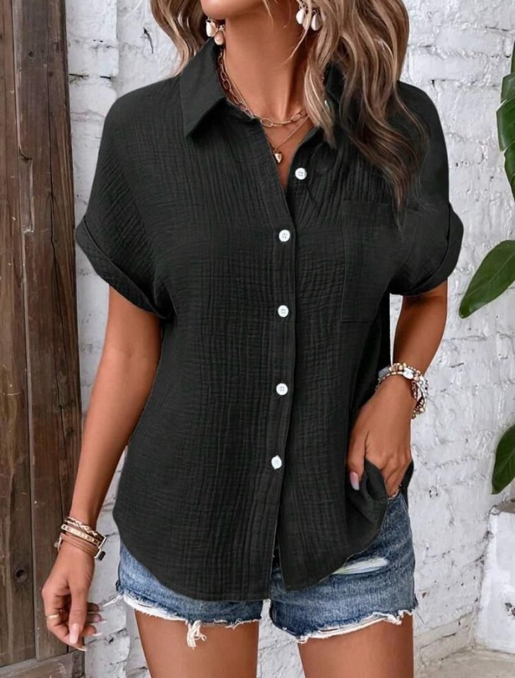 Kadın Cep Detaylı Kısa Kollu Müslin Kumaş Gömlek