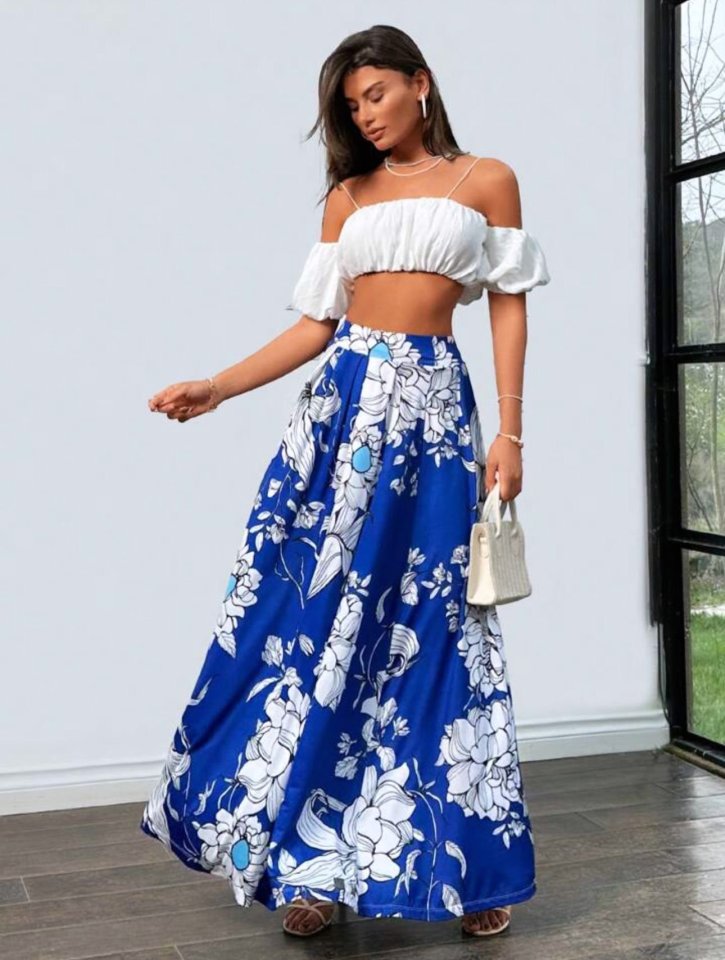 Kadın çiçek Baskılı Maxi Boy Süprem Etek