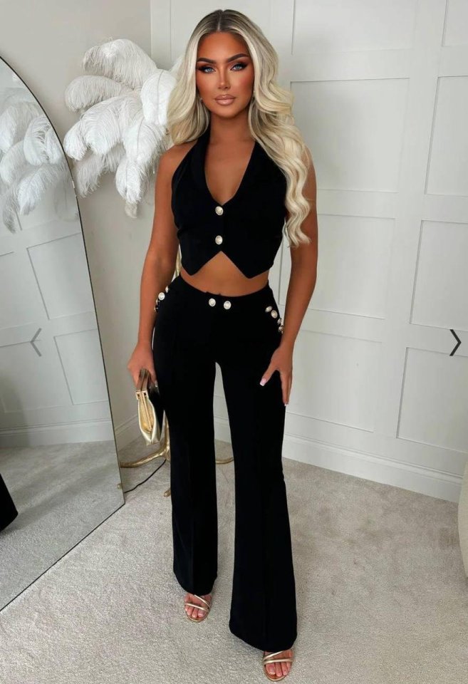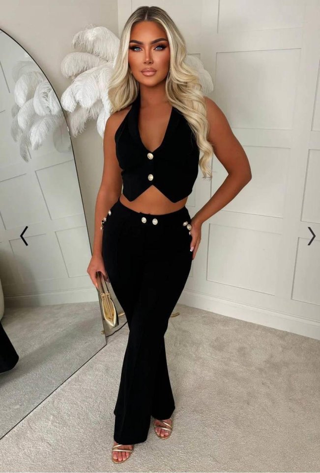 Kadın Dalgıç Kumaş Düğme Detaylı Yelek Pantolon Ikili Takım