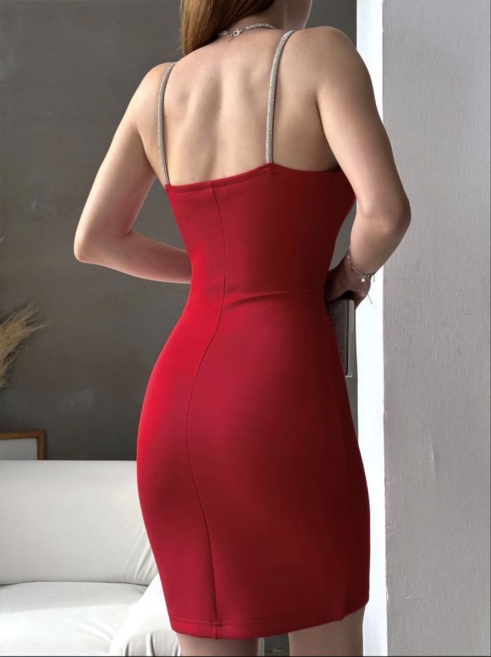 Kadın Dalgıç Kumaş Taş Detaylı Mini Boy Elbise
