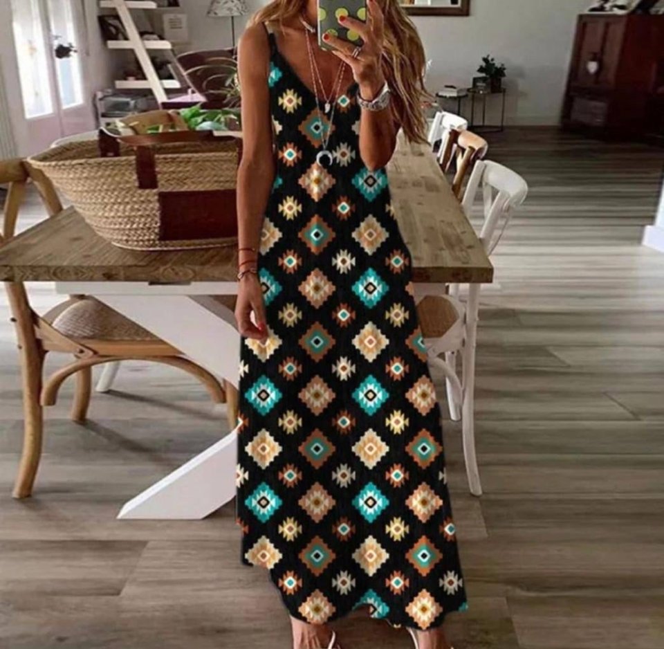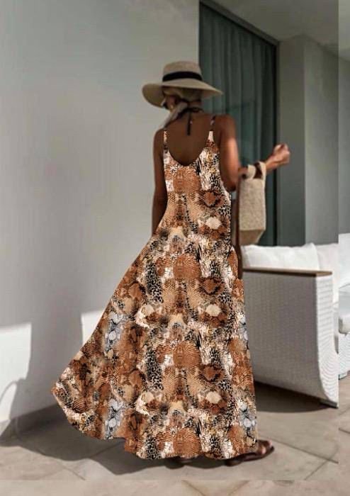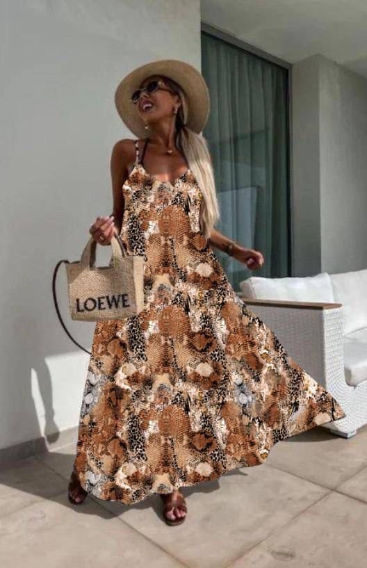 Kadın Dijital Baskılı Suprem Kumaş Askılı Maxi Boy Elbise