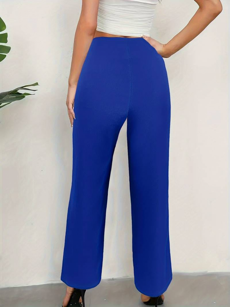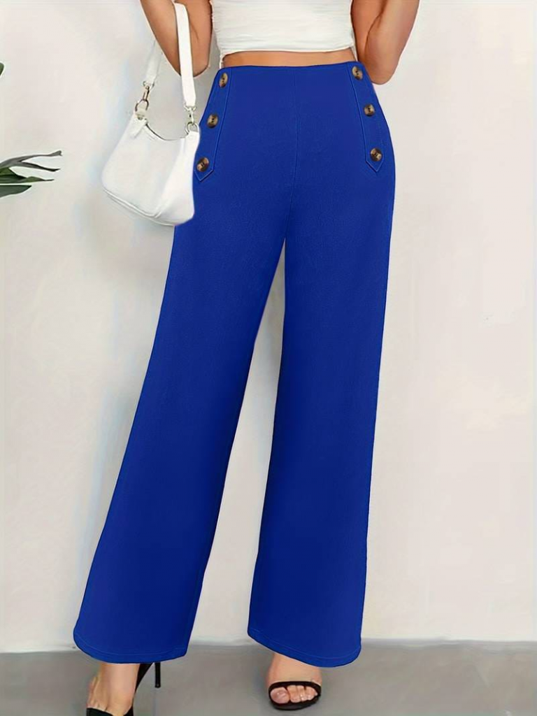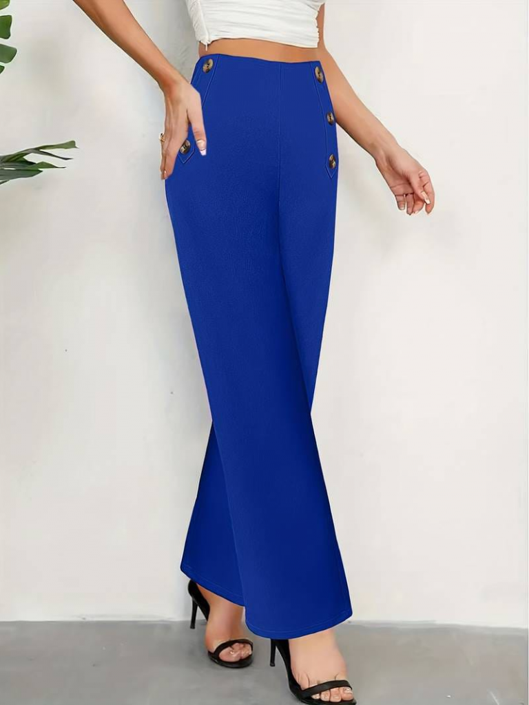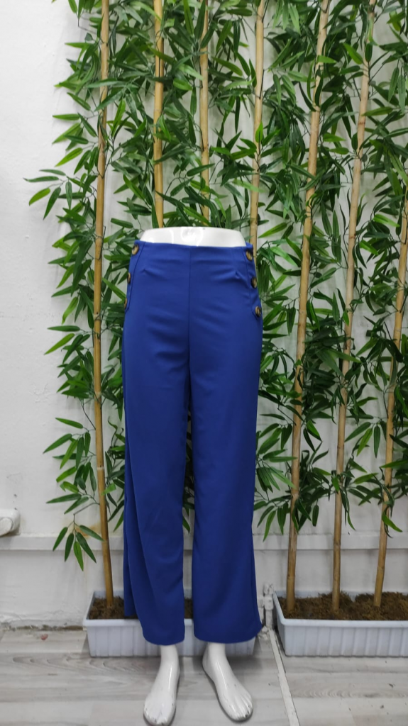Kadın Düğme Detay Bol Paça Ithal Krep Pantolon