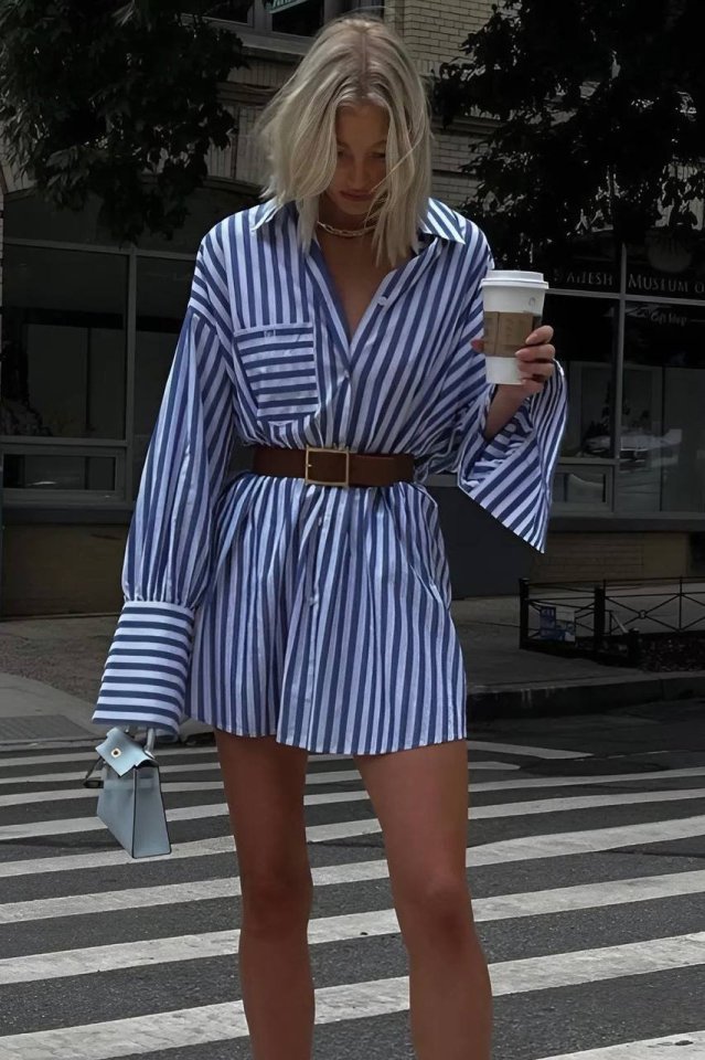“Kadın Gömlek -elbise çizgili Desen” için yorum yapan ilk kişi siz olun