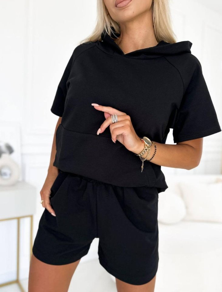 Kadın Iki Iplik Kumaş Alt şort üst Kapüşonlu Ikili Takım