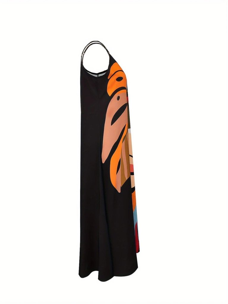 Kadın Ip Askılı V Yakalı Desenli Süprem Maxi Elbise