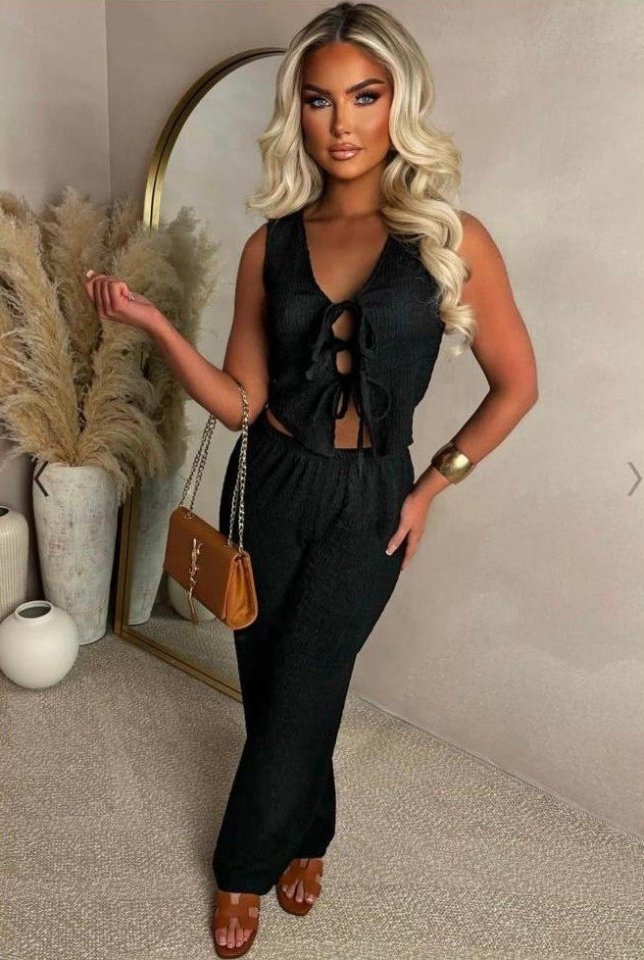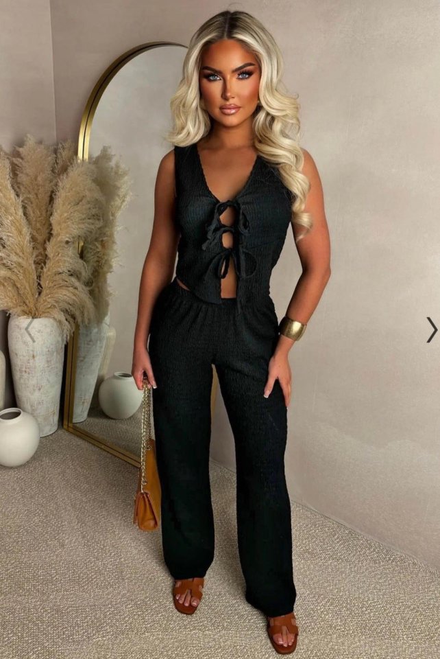 Kadın Ital Piliseli Kumaş önde Bağcık Detaylı Takım