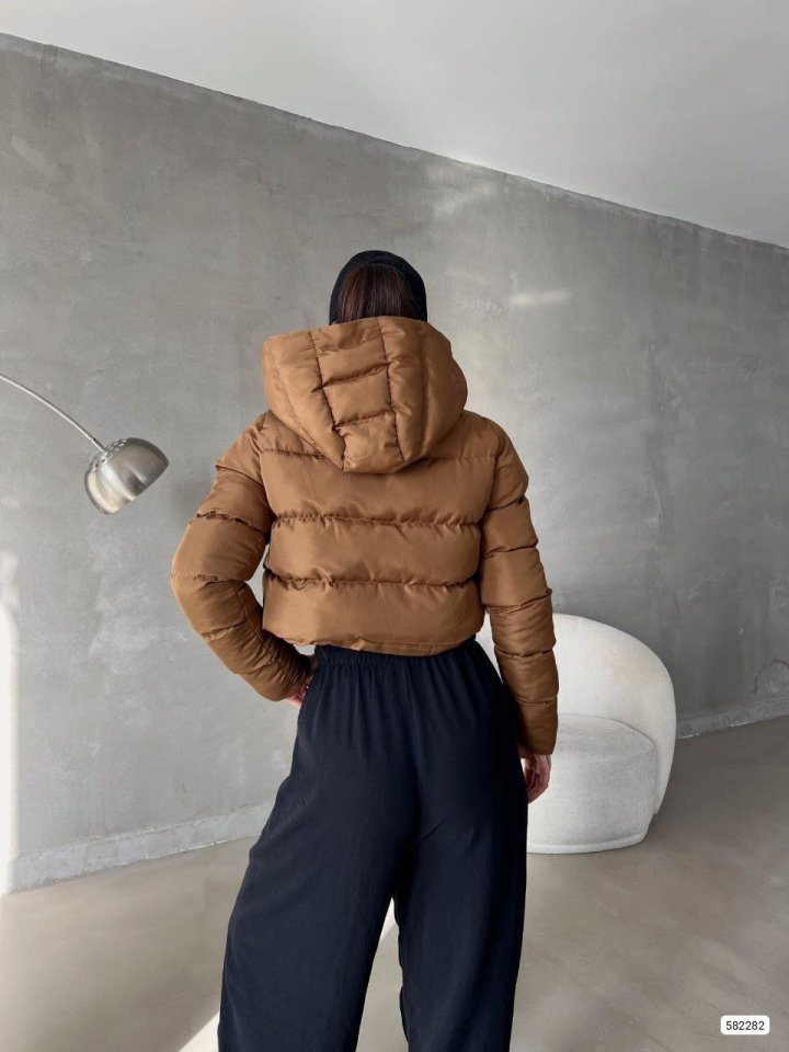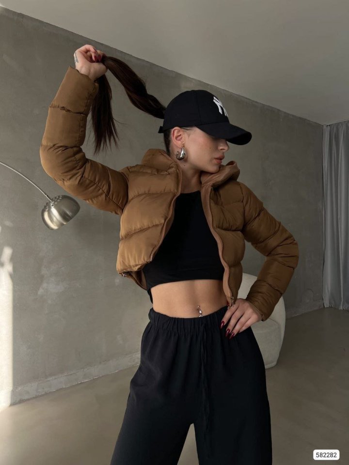 Kadın Kapüşon Detay Kısa şişme Mont