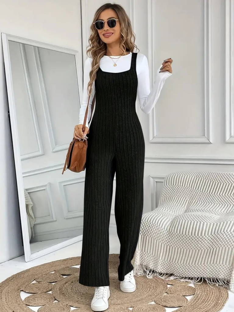 Kadın Kare Yaka Kalın Askılı Bol Paça Kaşkorse Tulum