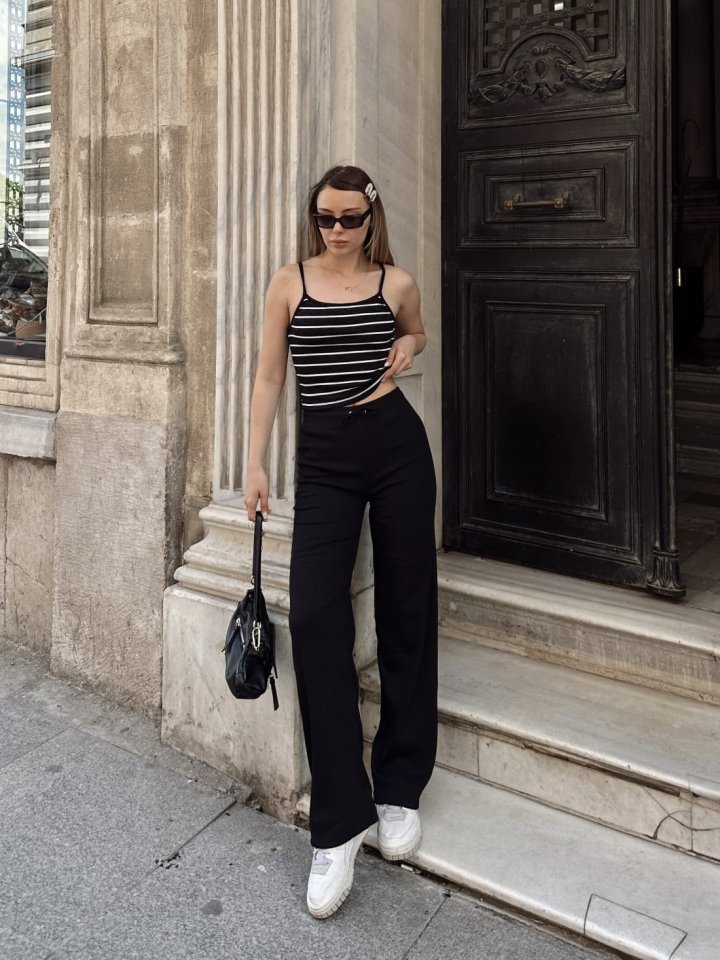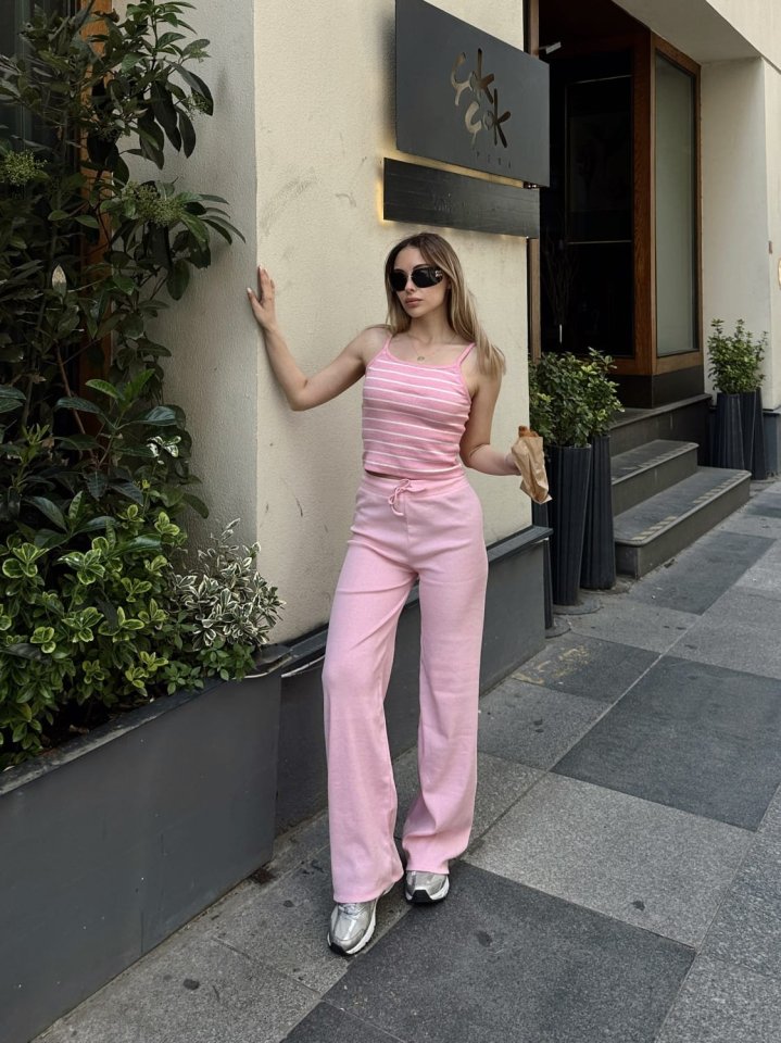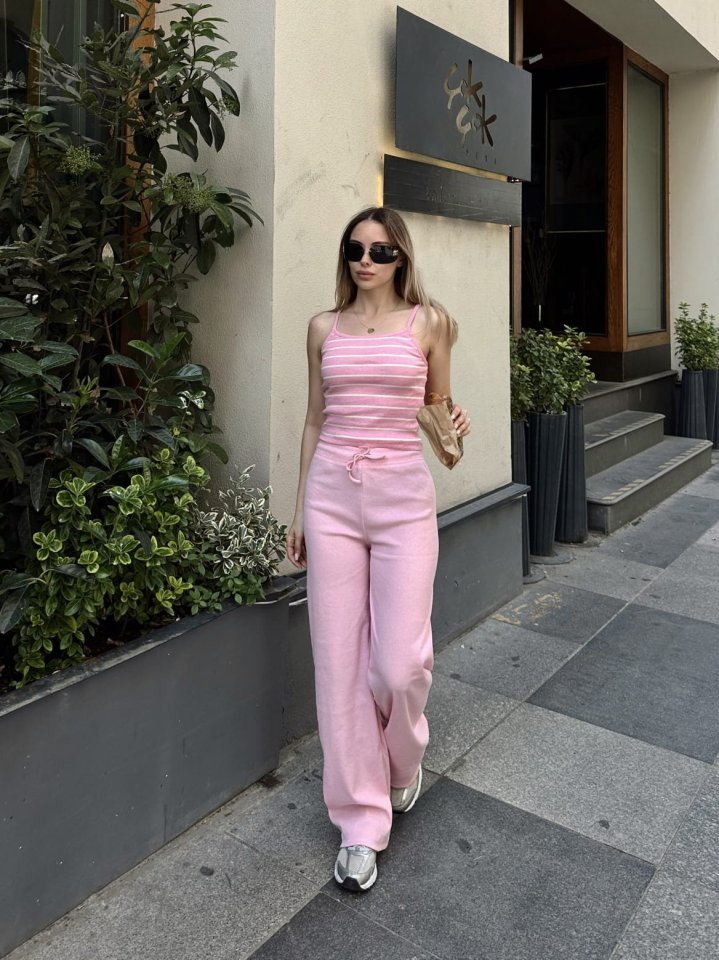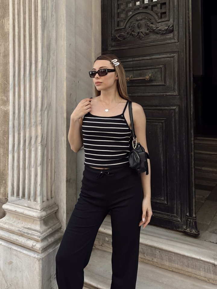 Kadın Kaşkorse Kumaş Askılı çizgili Takım