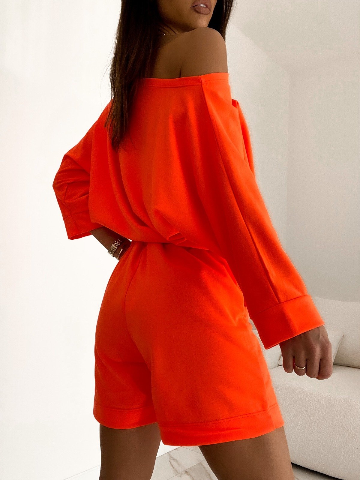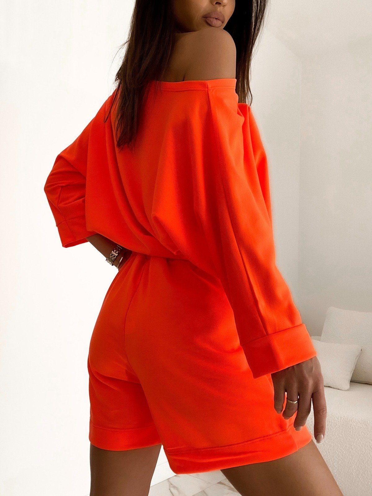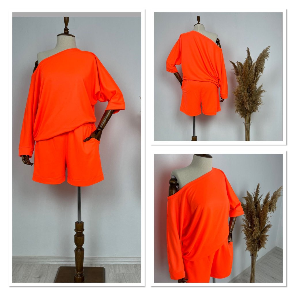 Kadın Kayık Yaka Oversize Asimetrik Bluz Ve şort Iki Iplik Takım