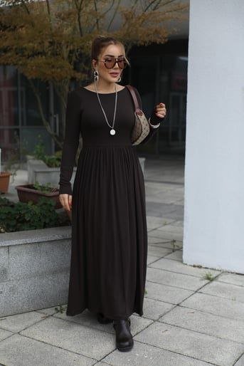 Kadın Kayık Yaka Sırt Dekoltesi Ve Yırtmaç Detay Maxi Boy Elbise