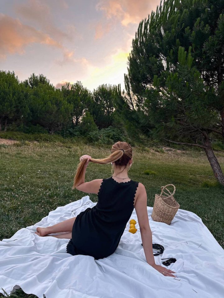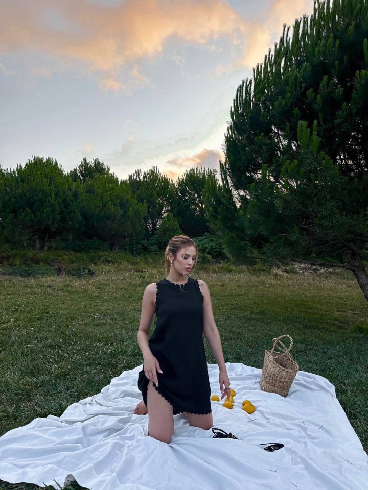 Kadın Keten Kumaş Kolsuz Mini Boy Elbise