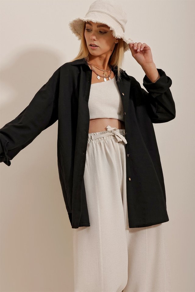 Kadın Keten Kumaş Oversize Gömlek