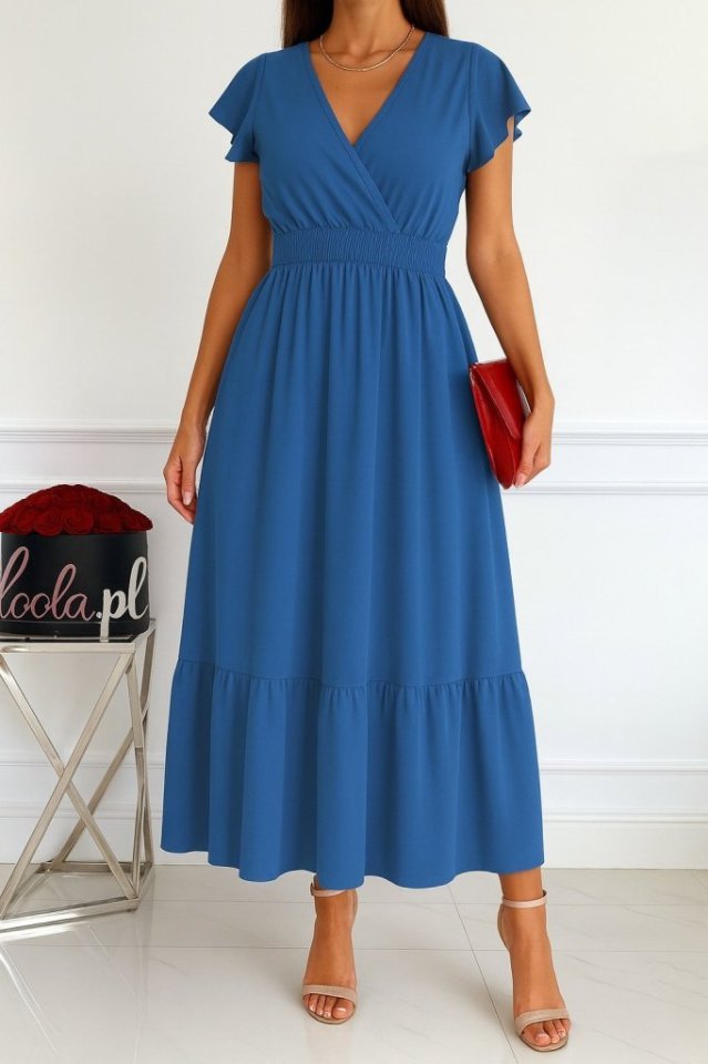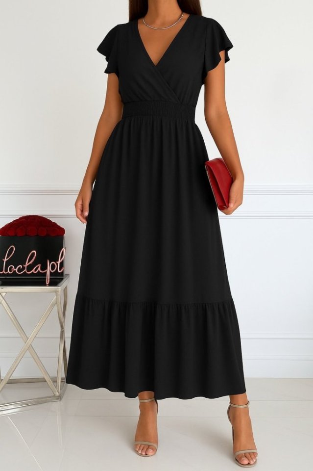 Kadın Kısa Kelebek Kollu Kruvaze Yakalı Beli Lastikli Aerobin Elbise