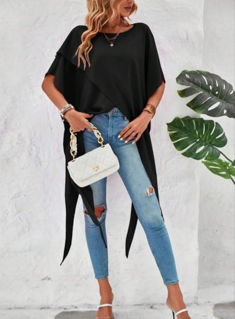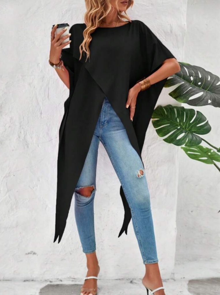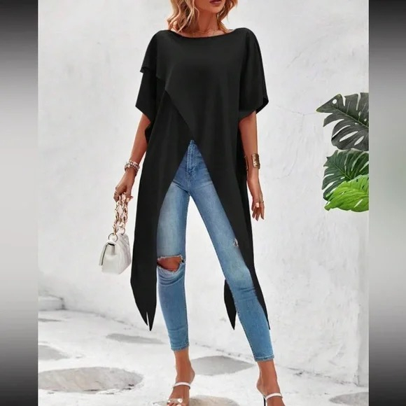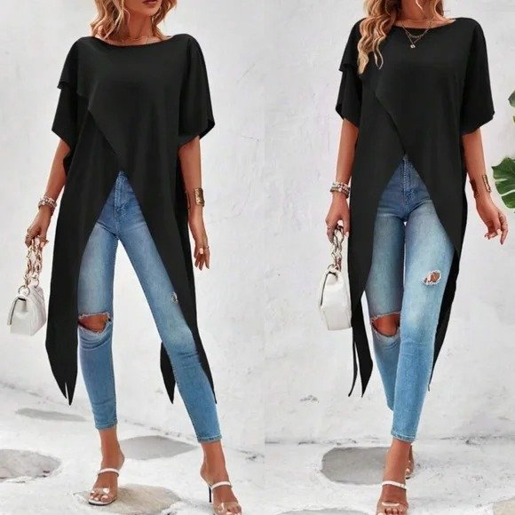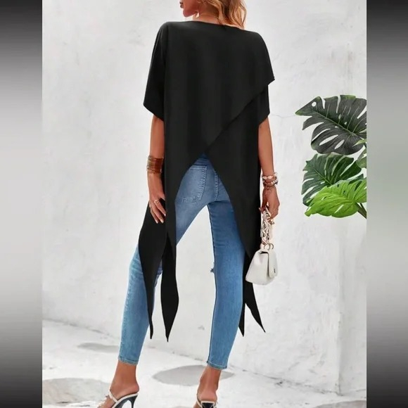 Kadın Kısa Kollu Asimetrik Kesim Sandy Uzun Bluz