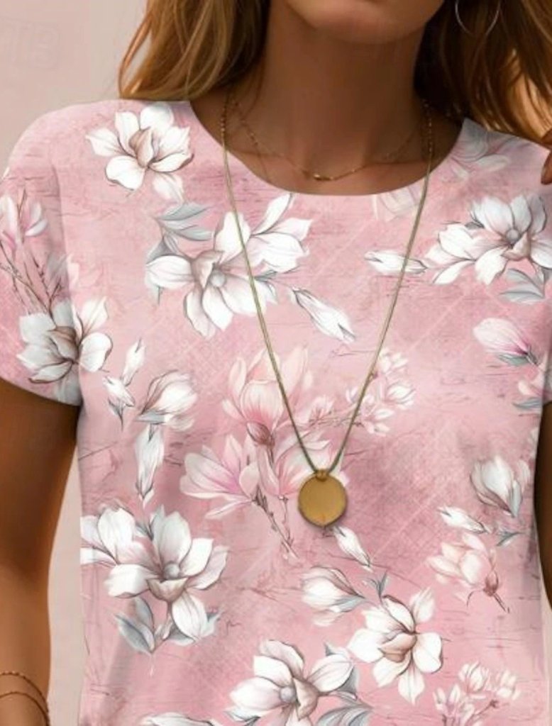 Kadın Kısa Kollu Bisiklet Yaka çiçek Desenli Viskon Bluz