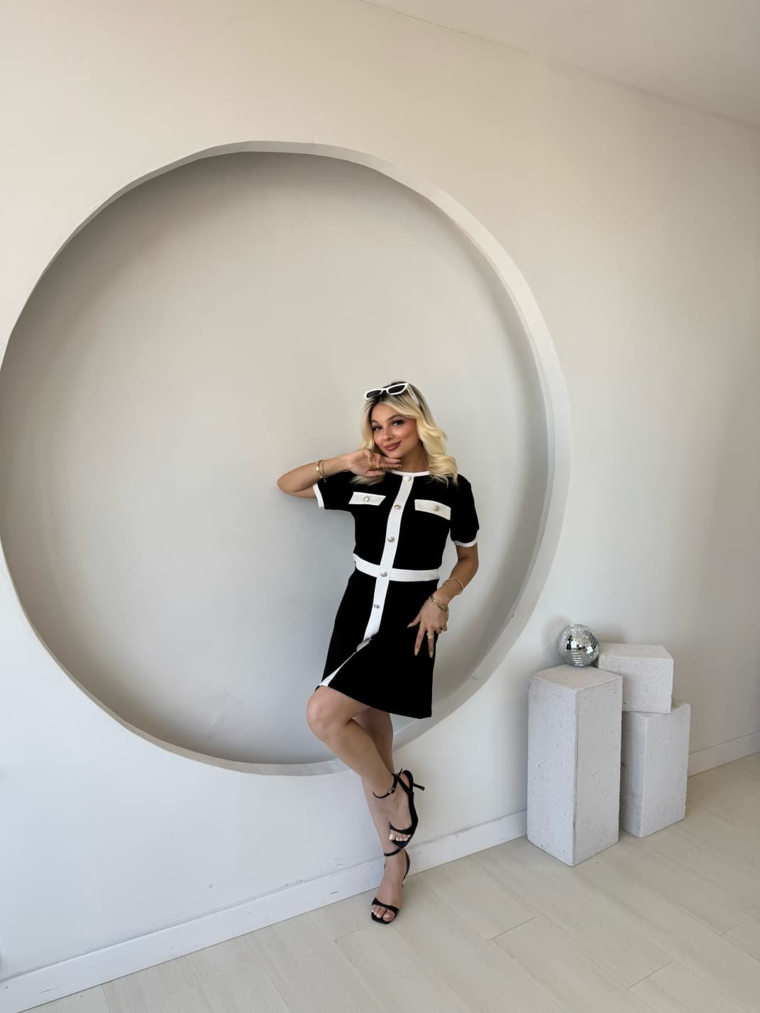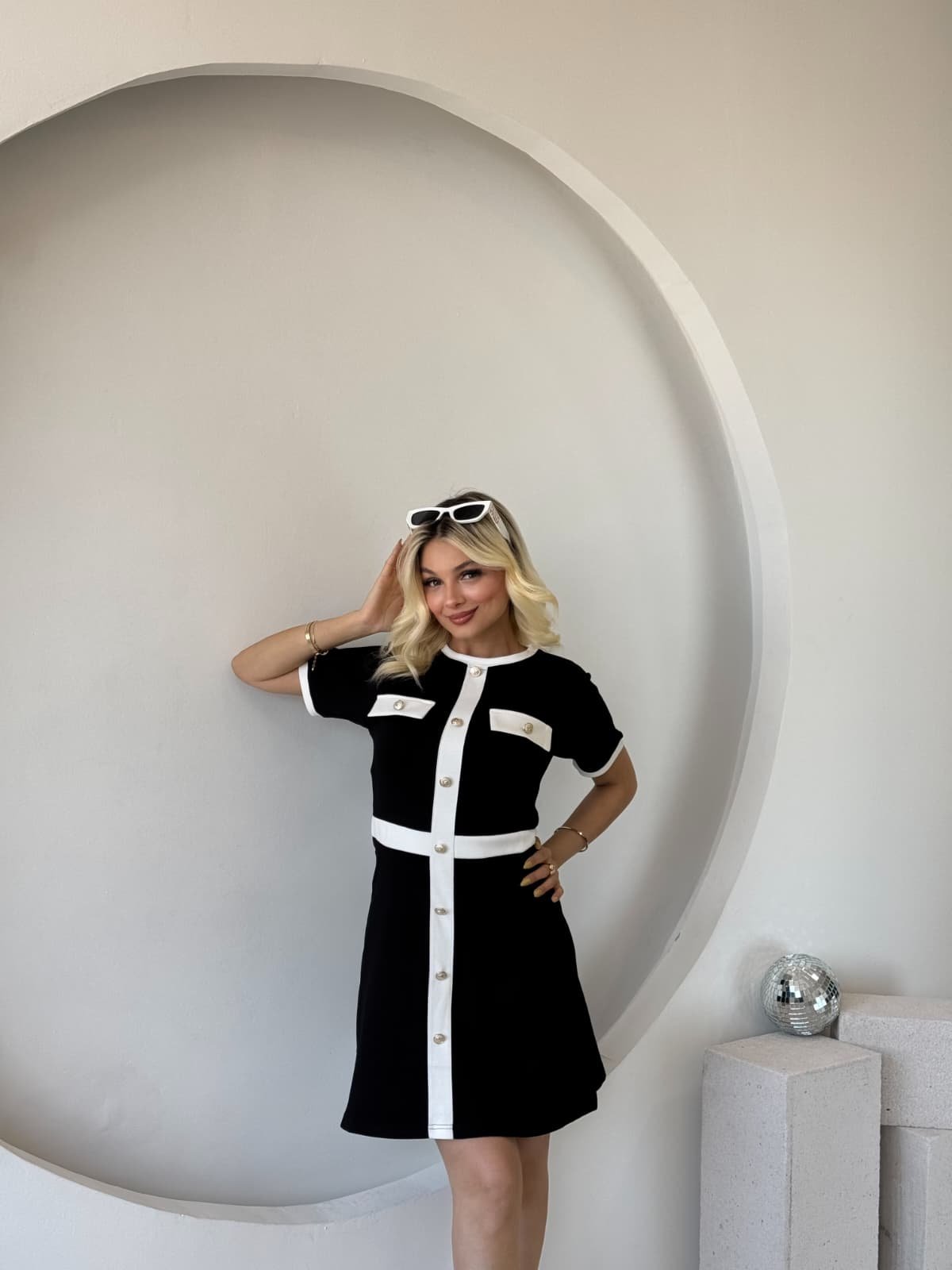 Kadın Kısa Kollu Bisiklet Yaka önden Düğmeli Modal Elbise