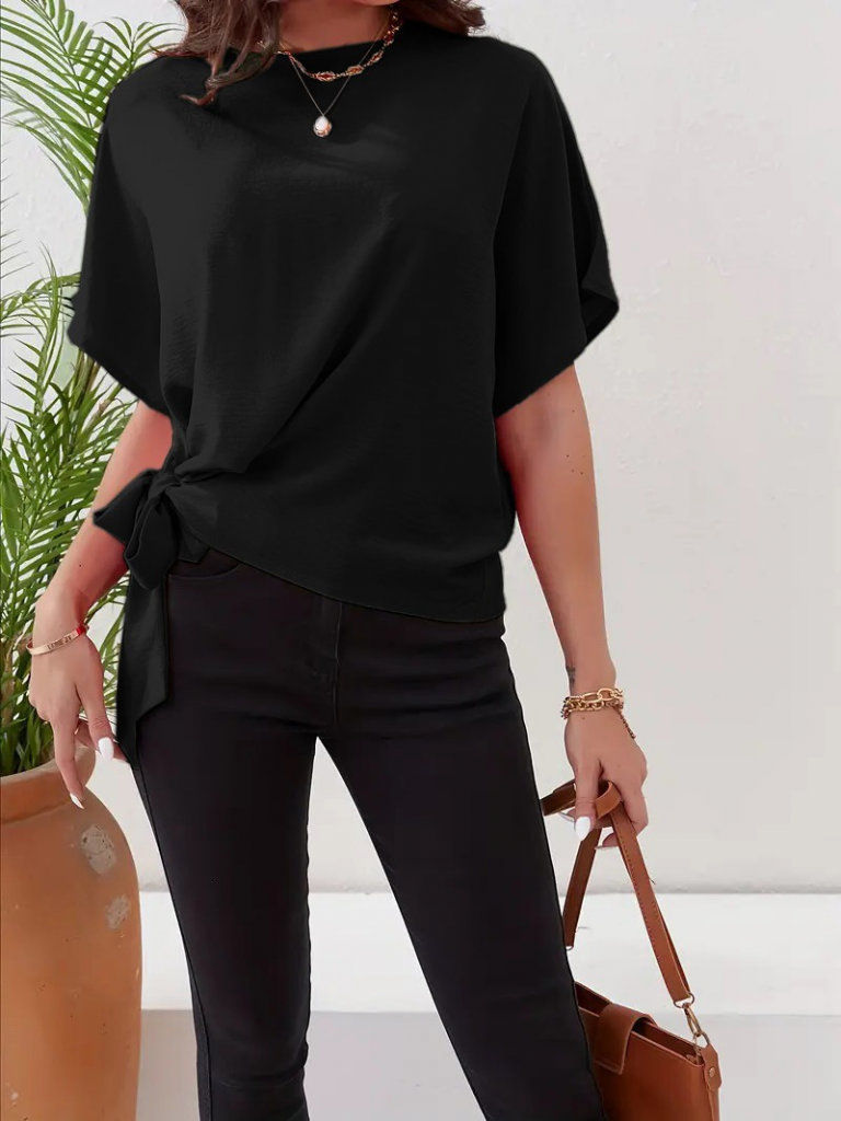 Kadın Kısa Kollu Bisiklet Yaka Yandan Bağlamalı Aerobin Bluz