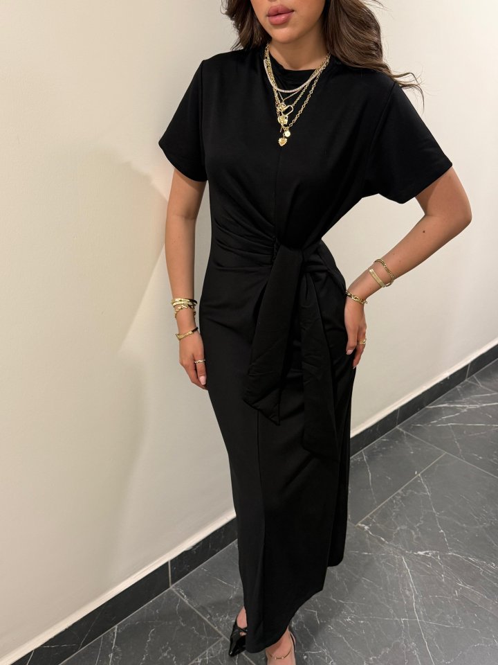 Kadın Kısa Kollu Bisiklet Yaka Yandan Bağlamalı Viskon Iki Iplik Elbise