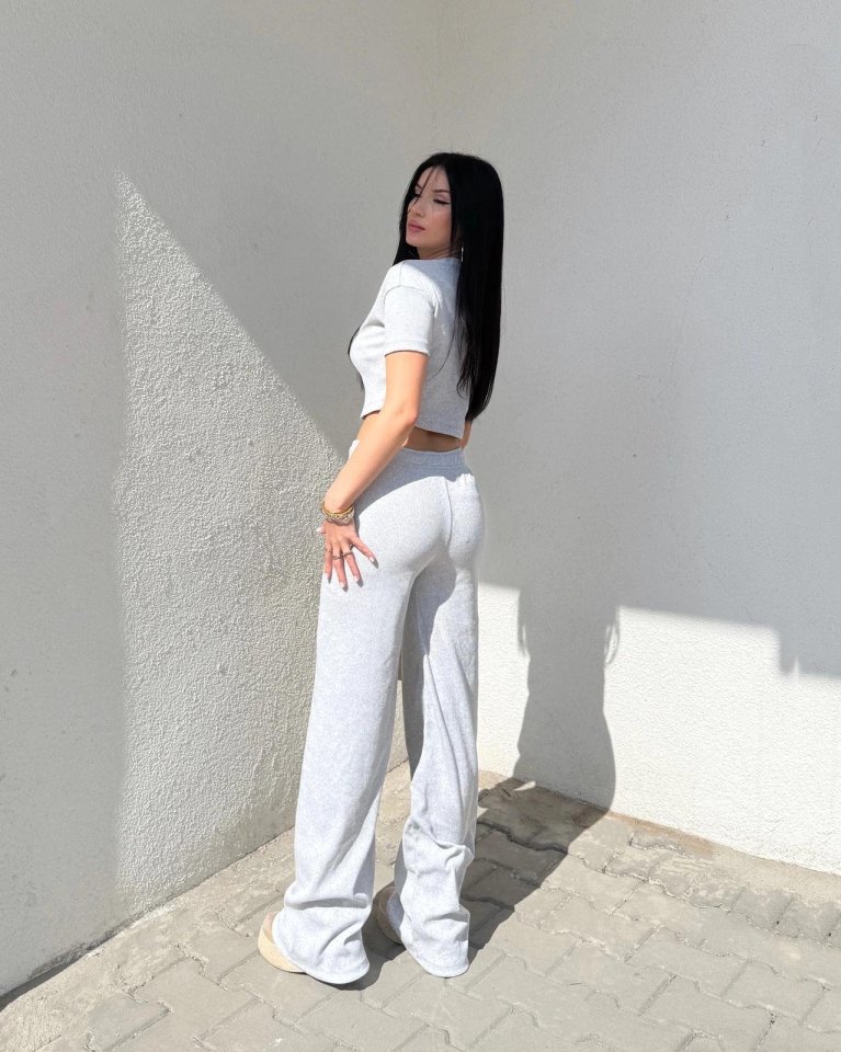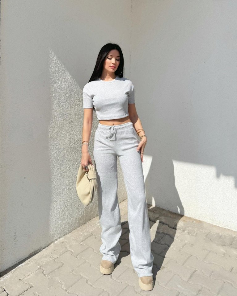 Kadın Kısa Kollu Bluz Ve Yüksek Bel Bol Baça Pantolon Ikili Takım