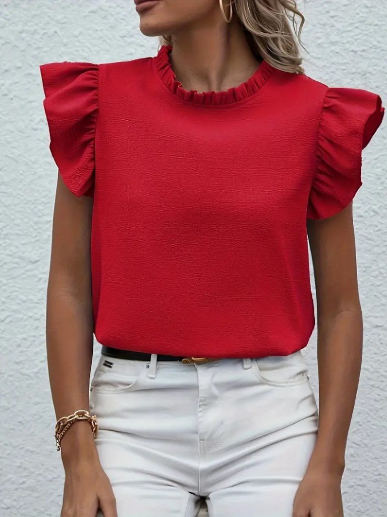 Kadın Kısa Kollu Fırfır Yakalı Bürümcük Bluz