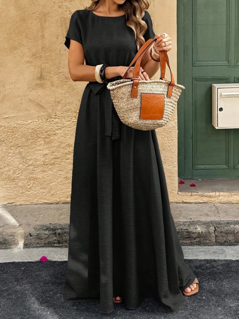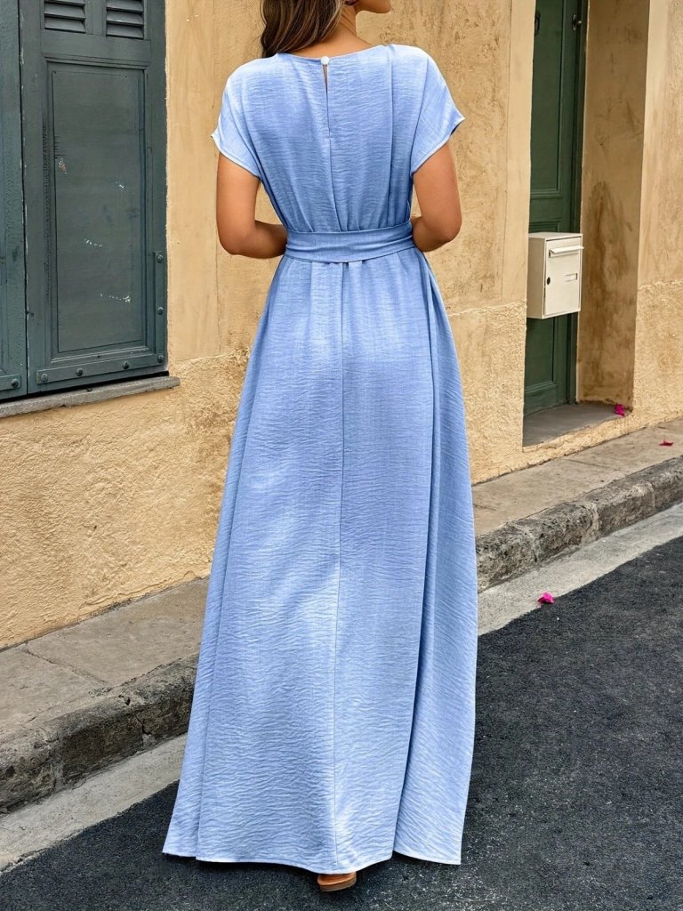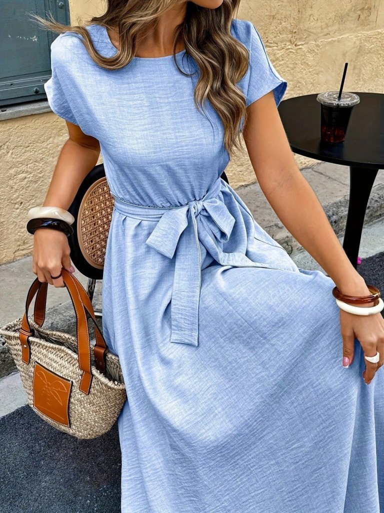 Kadın Kısa Kollu Kayık Yaka Beli Kuşaklı Aerobin Elbise